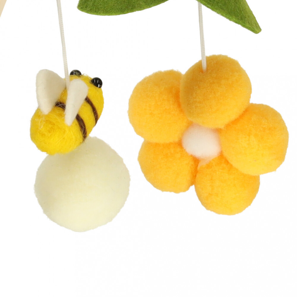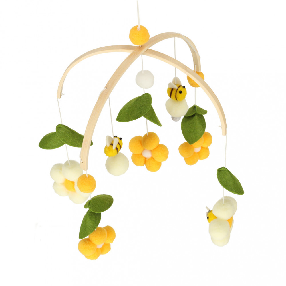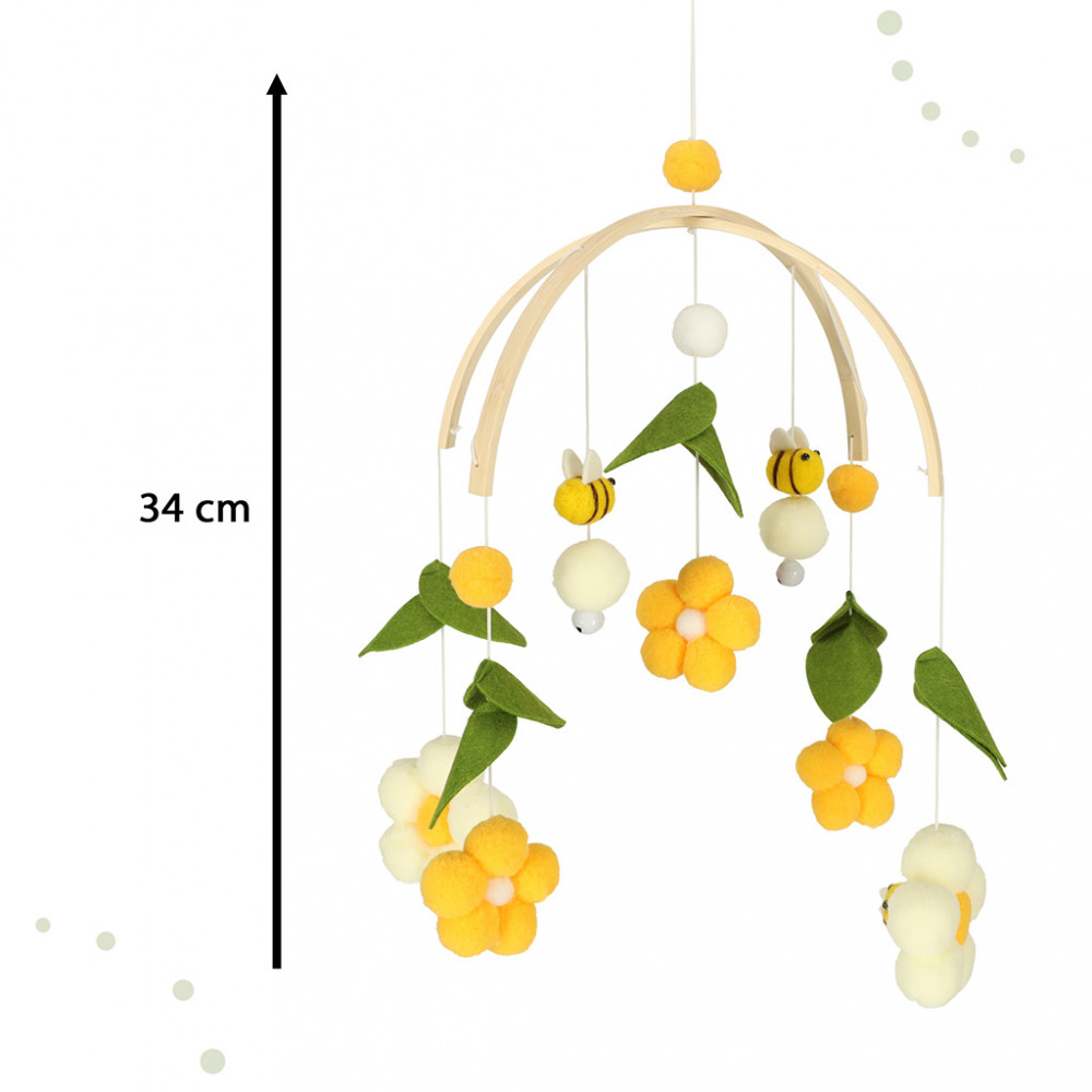 A virágokkal és méhecskékkel díszített gyermekágyi körhinta olyan termék, amely minden kisgyermeknek örömet szerez. A körhinta lágy színei illeszkednek a gyermekszoba színvilágához. A játék segíti a vizuális készségek fejlesztését. Méretek: 34 cm x 31,5 cm.