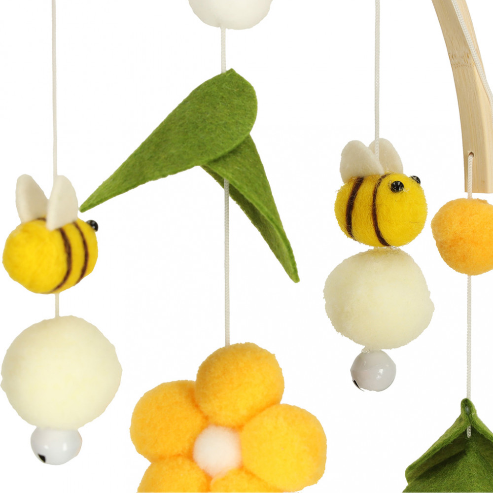 Amikor a körhintát mozgásba hozod, a bolyhos méhecskék és a sárga virágok ringatózni kezdenek, lekötve a baba figyelmét, miközben a látását is stimulálják. Az apró csengettyűk pedig halkan csengenek, hogy a hallásérzéket stimulálják.