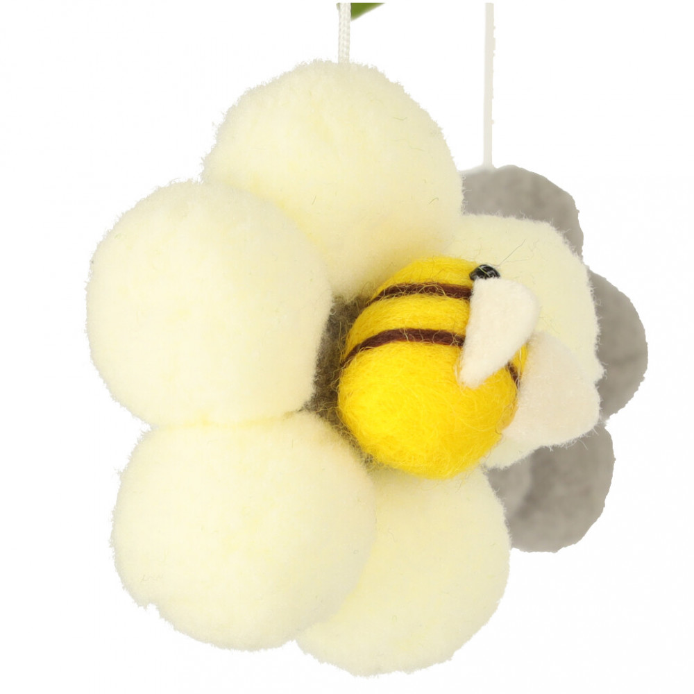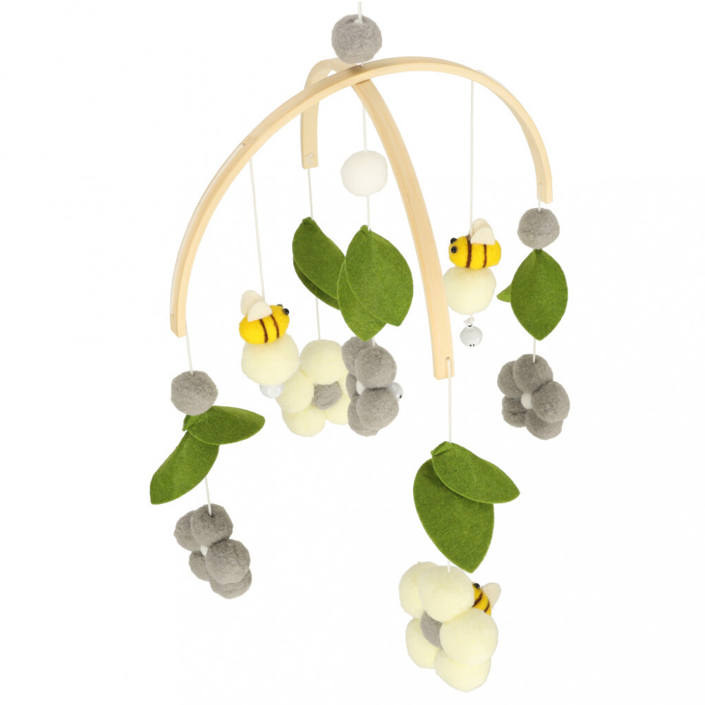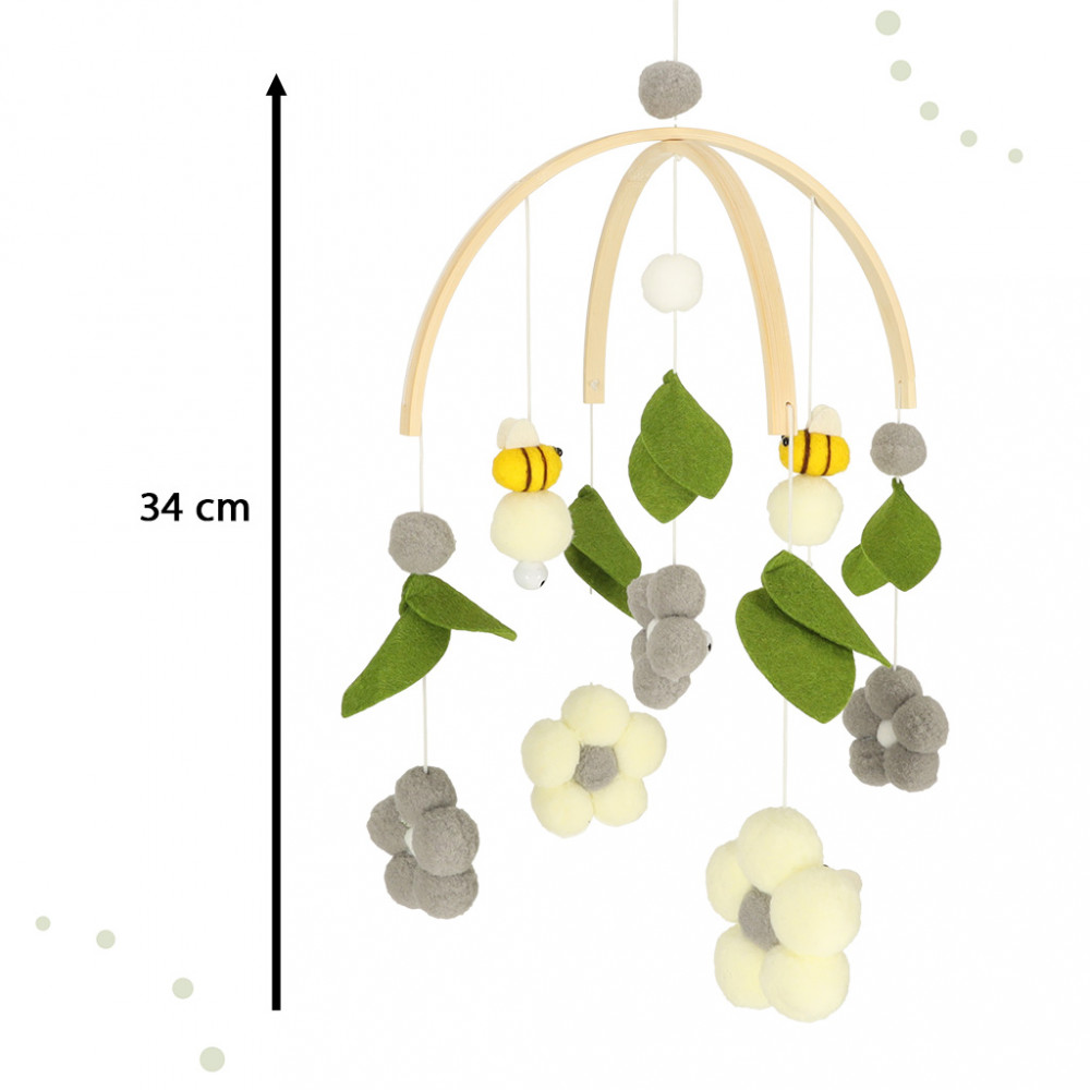 A virágokkal és méhecskékkel díszített gyermekágyi körhinta olyan termék, amely minden kisgyermeknek örömet szerez. A körhinta lágy színei illeszkednek a gyermekszoba színvilágához. A játék segíti a vizuális készségek fejlesztését. Méretek: 34 cm x 31,5 cm.