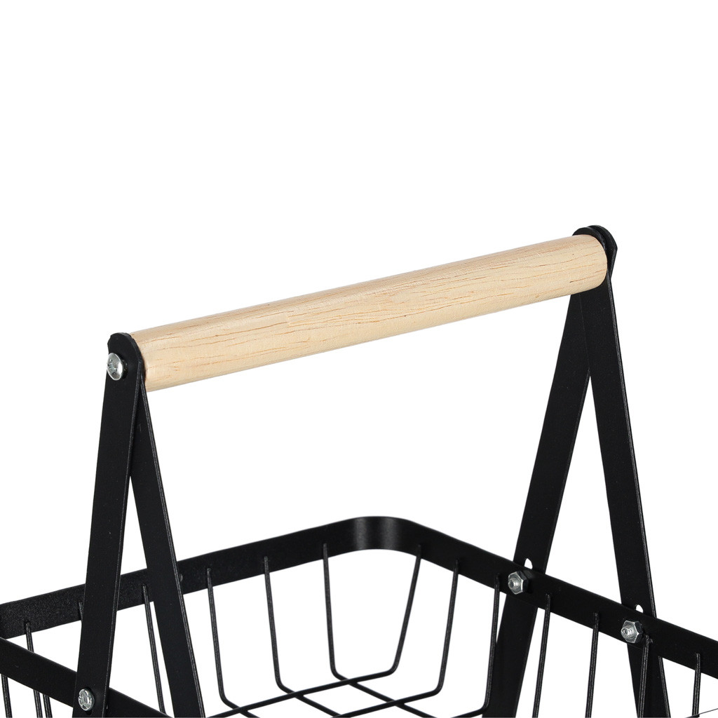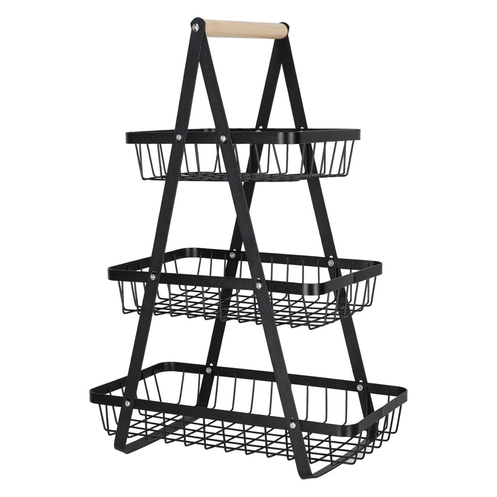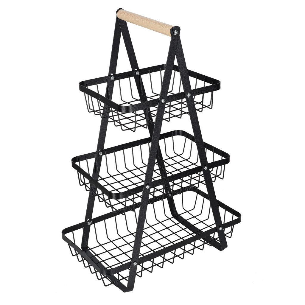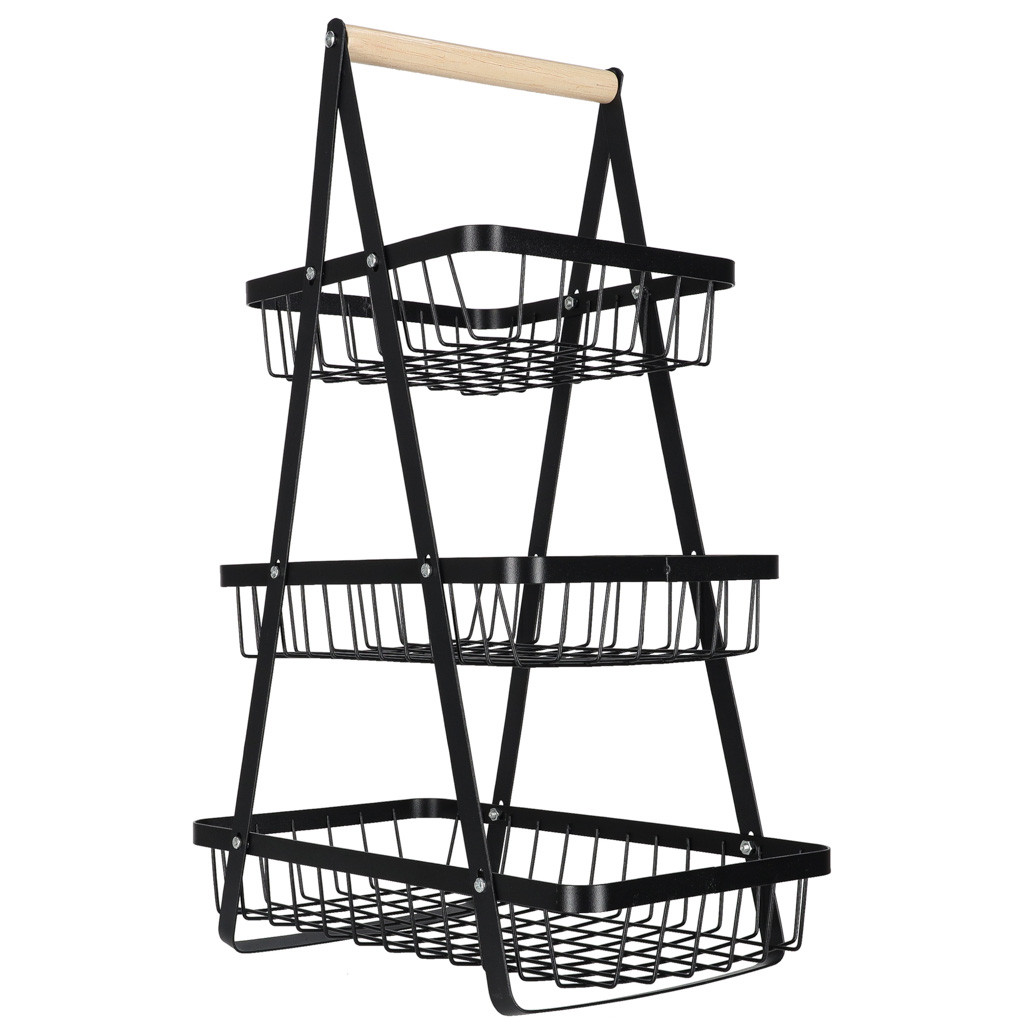 Gyümölcskosár fekete háromszintes fém kosár fa