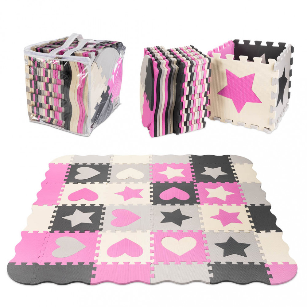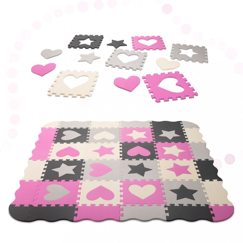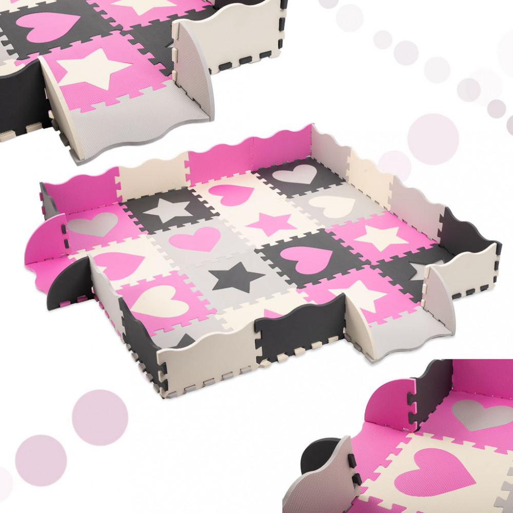 Hab puzzle szőnyeg / járóka 36el szürke/rózsaszín 143cm x 143cm x 1cm