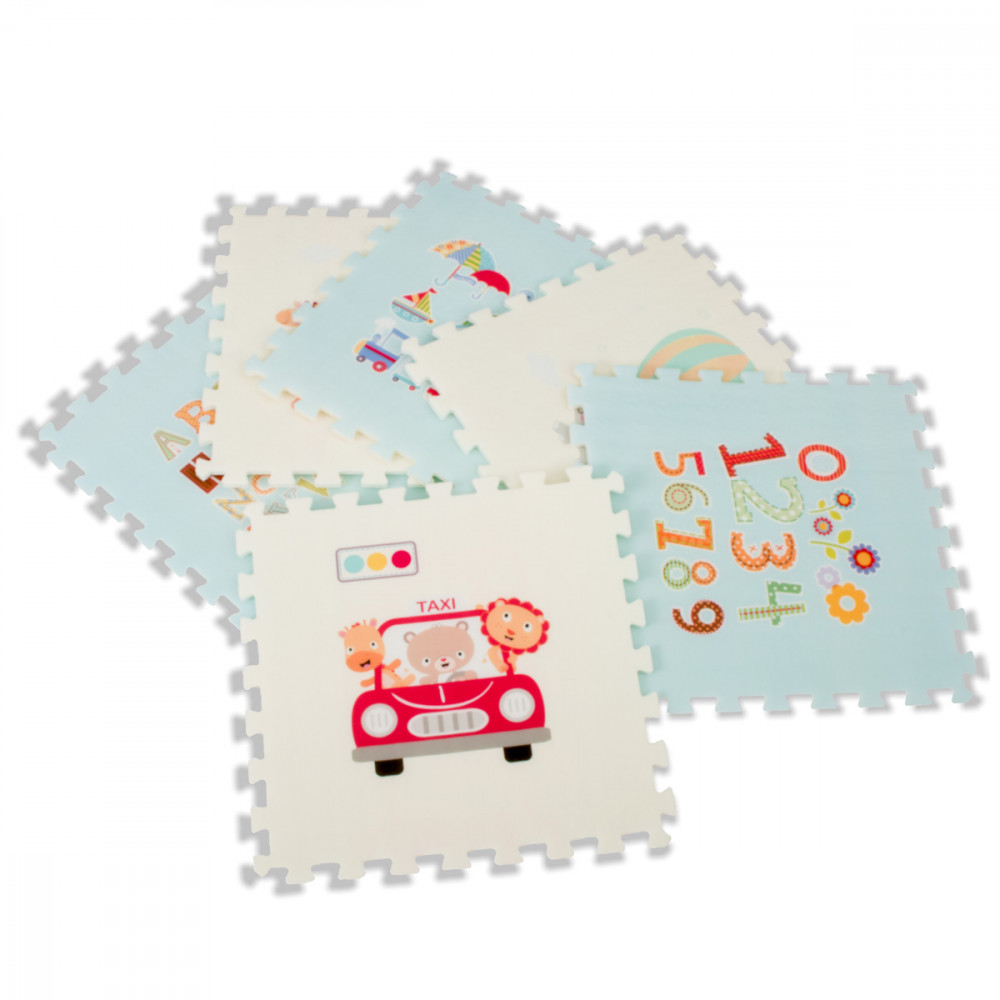 Vastag habszivacs puzzle 6 darabból, színes nyomatokkal díszítve. Bármilyen elrendezés nagy szőnyeget hoz létre. Ideális játékhoz vagy kúszni tanuláshoz. Megvédik gyermekét az esésektől és a hideg padlótól. A szőnyeg méretei: 177x118cm.