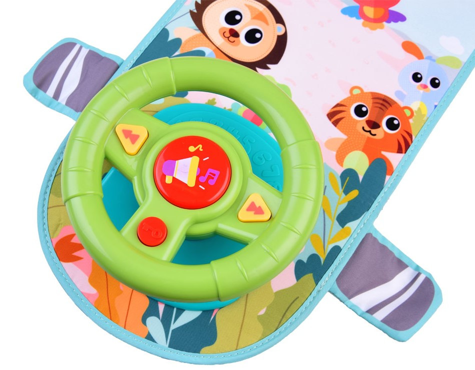 - a rugalmas szőnyeg, amelyen a kormánykerék található, könnyen alkalmazkodik a gyermek helyzetéhez