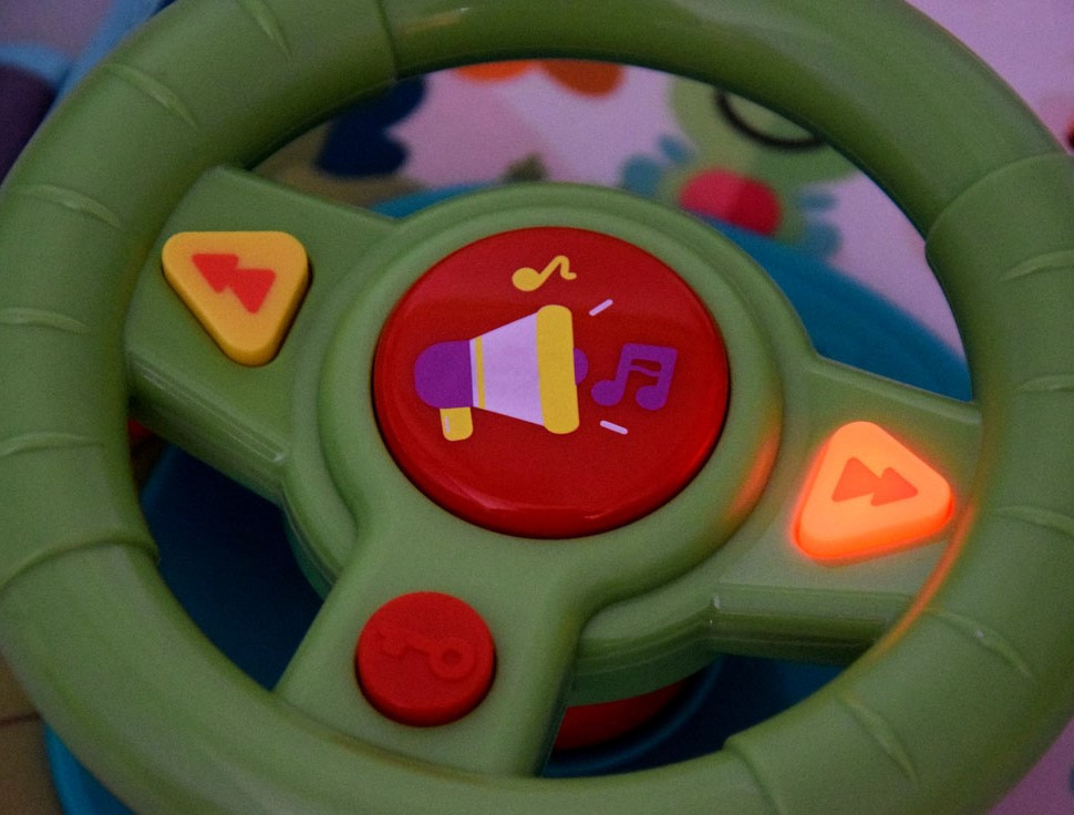 Interaktív kormánykerék az autóhoz. A kisautó-rajongók szívét is elrabolja. Hang- és fényeffektusokkal rendelkezik, hogy a kisgyermekek le legyenek foglalva az utazás során. A kormánykerék átmérője: kb. 14 cm. Hossza fogantyúkkal együtt: kb. 52 cm.