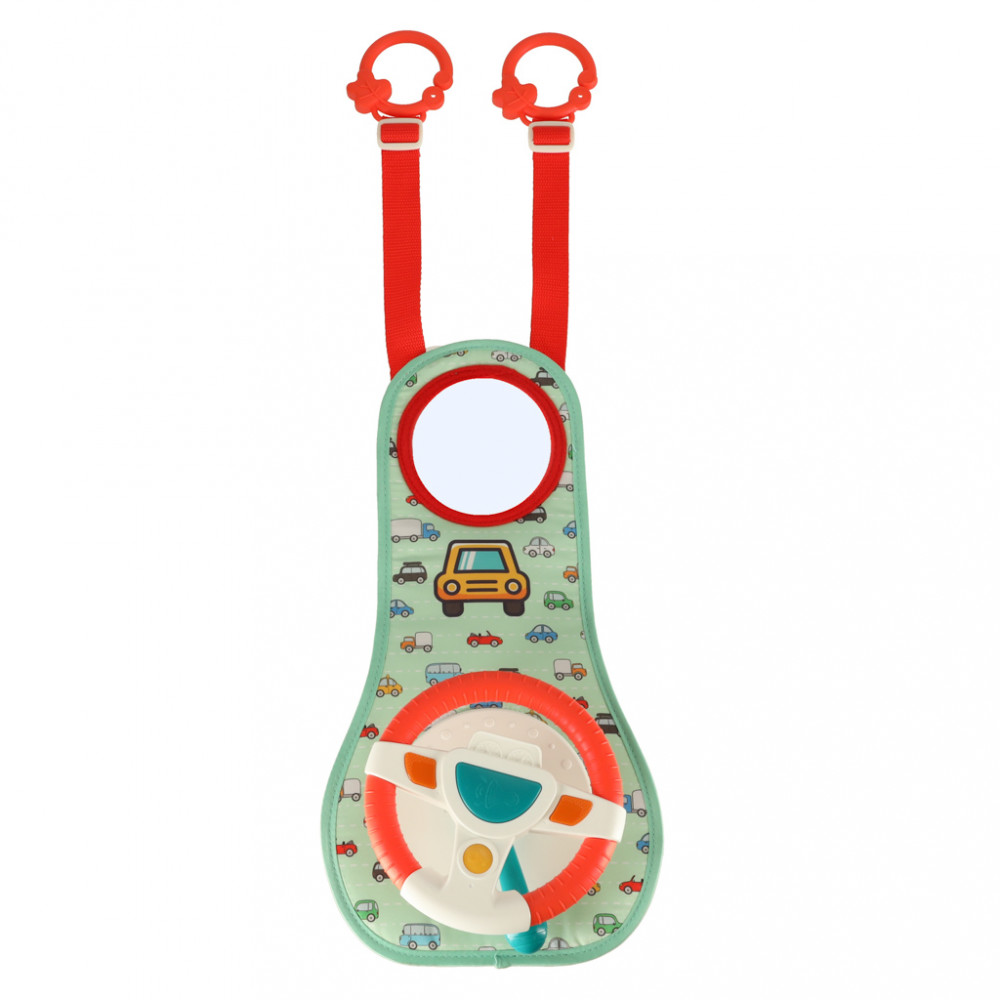 Egy 4 gombos kormánykerékből és egy érzékszervi vezérlésből, valamint egy műanyag biztonsági tükörből áll. Az elemeket egy merev párnára helyezik, amelyet kellemes, játékautók motívumát ábrázoló szövet borít.