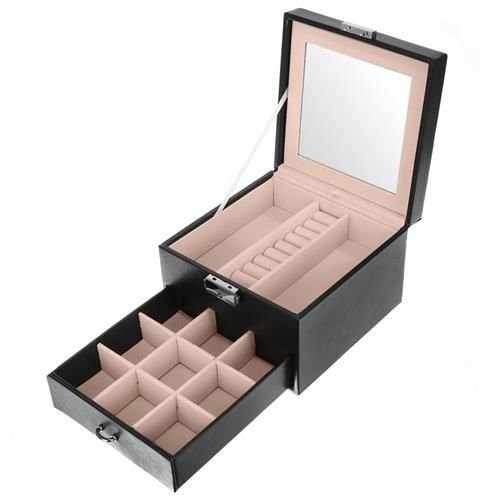 2 szintes ékszerdoboz, fekete, 9+ rekesszel
