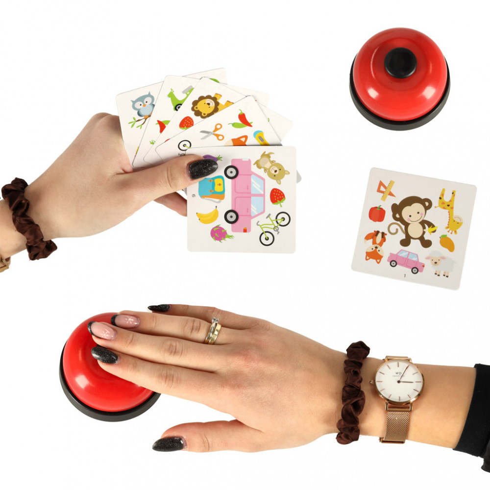 A második játékmódnál osszuk szét a kártyákat egyenlően minden játékos között, és a megmaradt kártyákat képpel lefelé az asztalra rakjuk. A forduló megkezdéséhez fedjétek fel az asztal közepén lévő kártyát, minden játékos fedje fel a legfelső lapját, és minél gyorsabban meg kell találnia azt a szimbólumot, amely az ő kártyáján és az asztal közepén lévő kártyán is szerepel. Az nyer, aki először csenget, és rámutat az ismétlődő szimbólumra, a győztes elveszi a kártyáját az asztalról, és pontként félreteszi. A többi játékos kártyája a dobóhalomba kerül! A játék akkor ér véget, ha a játékosok kifogytak a kártyákból!