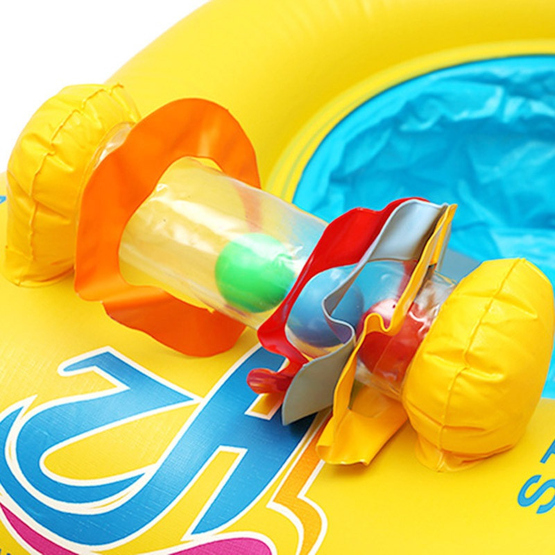 A kerékhez színes, csörgő labdák vannak rögzítve, amelyek változatosabbá teszik a játékot, és arra ösztönzik a gyermeket, hogy megtanuljon úszni.