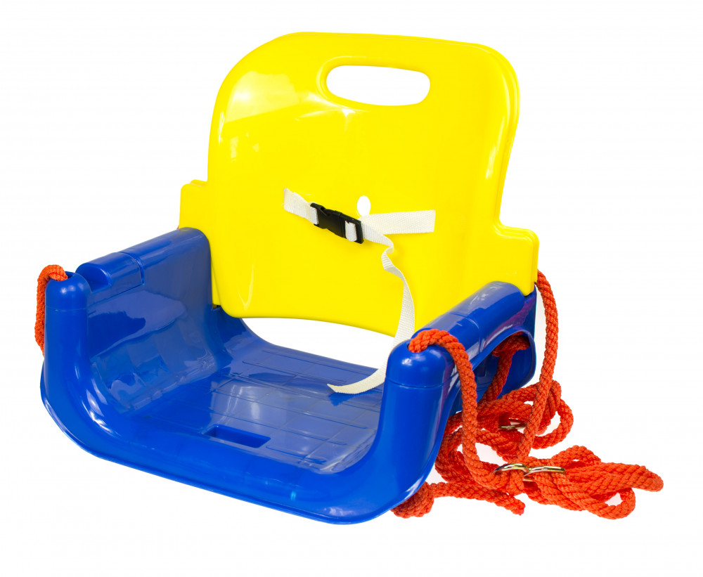 az ülés tartós műanyagból készült, méretei: a kötél hossza 119 cm-ig, magassága 30 cm, szélessége 40 cm, lábnyílás szélessége 13 cm, biztonsági övvel rendelkezik.