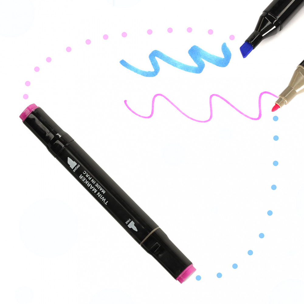 Minden markernek két hegye van, egy széles hegy- ideális nagyobb területek festéséhez, és egy vékony hegy - vékony és pontosabb vonalak létrehozásához, hogy részleteket adjon hozzá. A megfelelő hegy biztosítja, hogy a rajz részletgazdag vagy jobban fedett legyen.