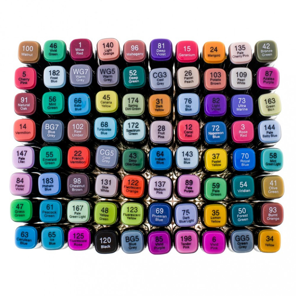 Alkoholos filctollak készlete. Minden markernek két hegye van - egy vékony és egy vastag hegye. A festés és a rajzolás fantasztikus módja annak, hogy kifejezd a kreativitásodat. A készlet tartalmazza: 80 marker, állvány, tok. Marker hossza: 15 cm. Alapméretek: 16x13x3cm.