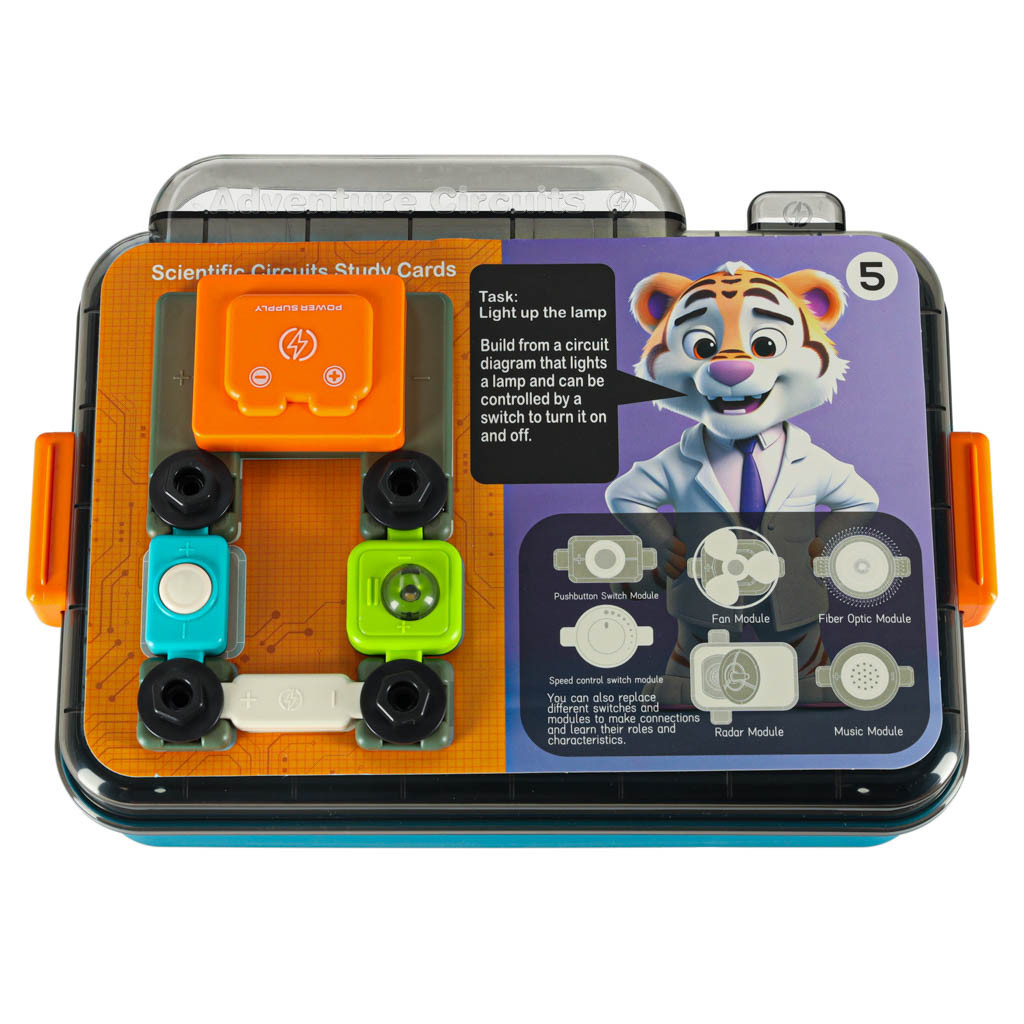 Ez a színes oktató készlet lehetővé teszi, hogy gyermeke saját maga hozzon létreműködő elektronikus áramköröket. Azintuitív modulokkal, dugókkal éscsavarokkal a kisgyermek bármit megépíthet az egyszerű, lámpával ellátott áramkörtől a fejlett, radarral, zenével ésventilátorral ellátott áramkörökig.