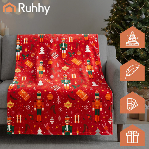 RUHHY Kétszemélyes, Karácsonyi Flanel Takaró 150x200 cm, Poliészter, Pirosszínű és Színes