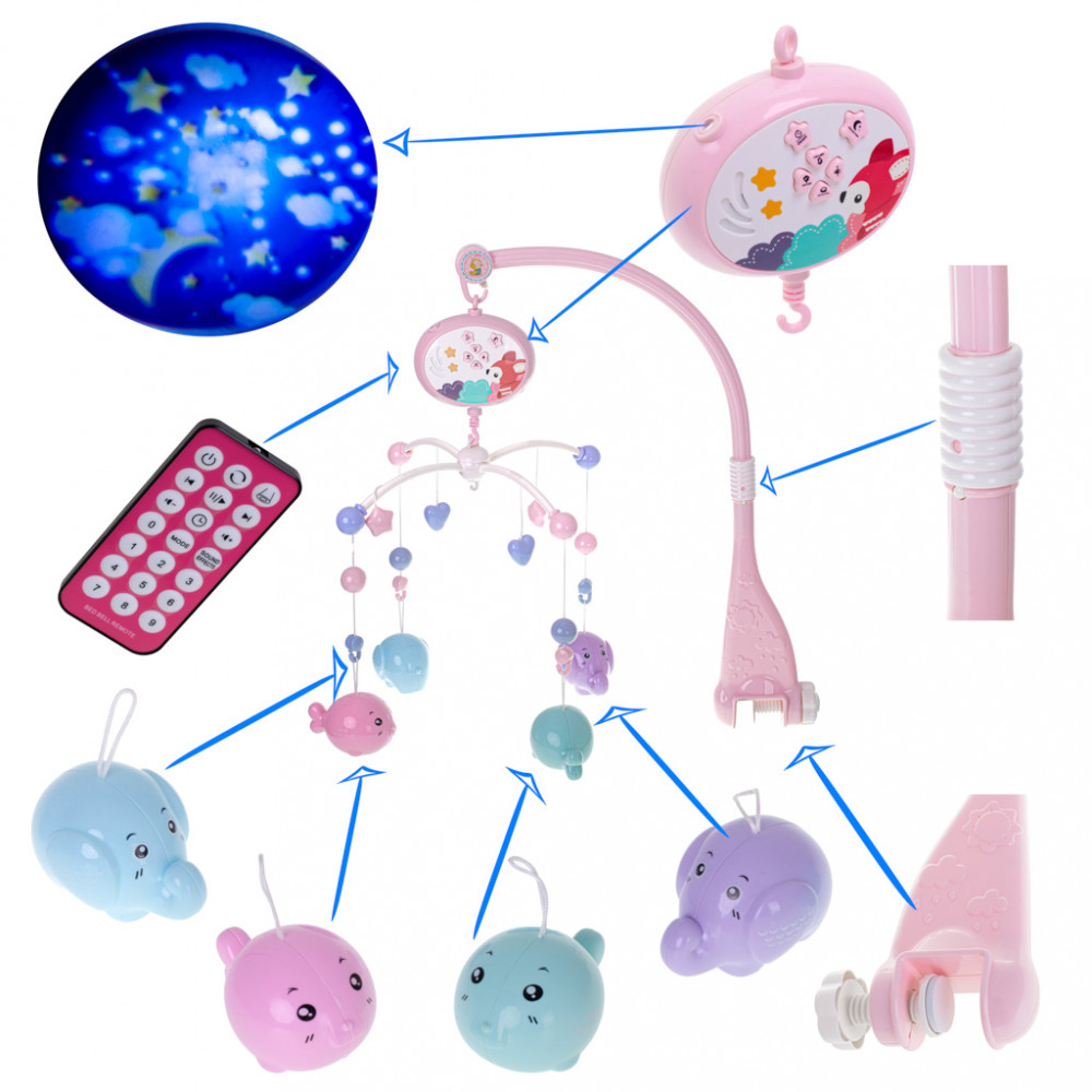 Körhinta csillag design altatódalok + távirányító rózsaszín