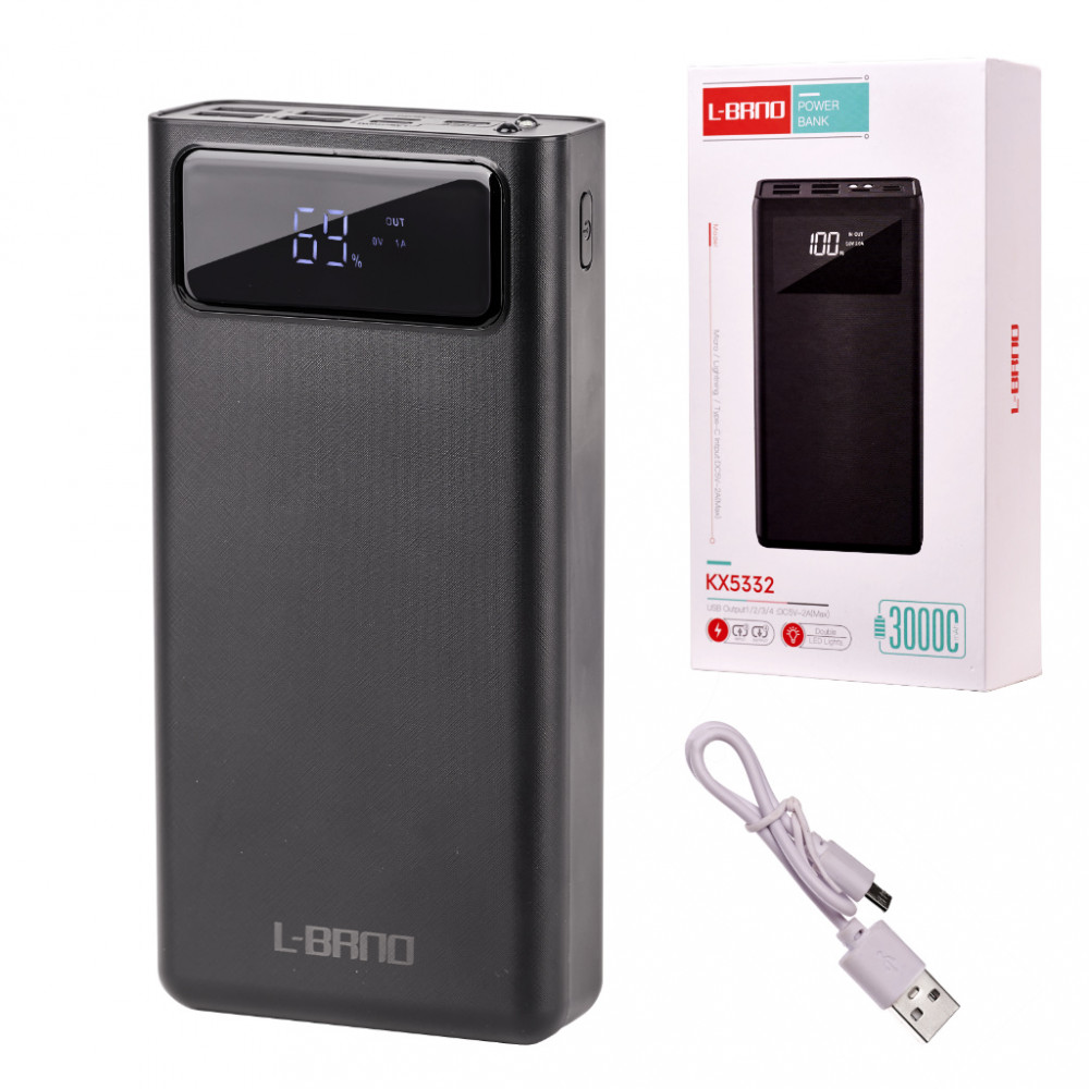 L-BRNO Power Bank 30000mAh LED kijelzővel fekete