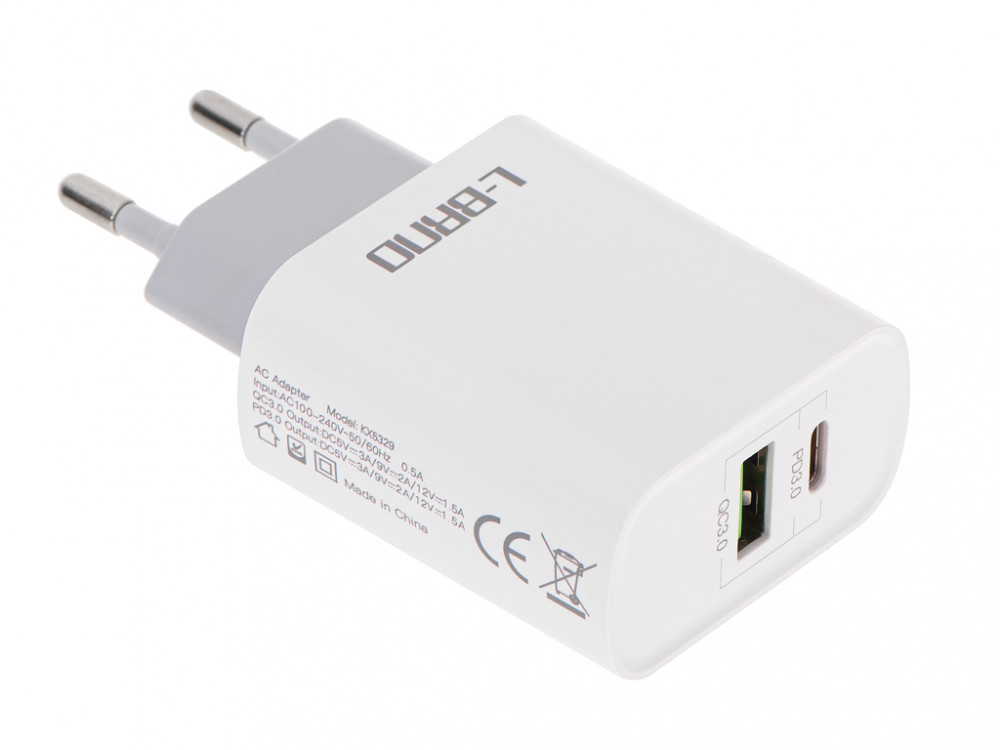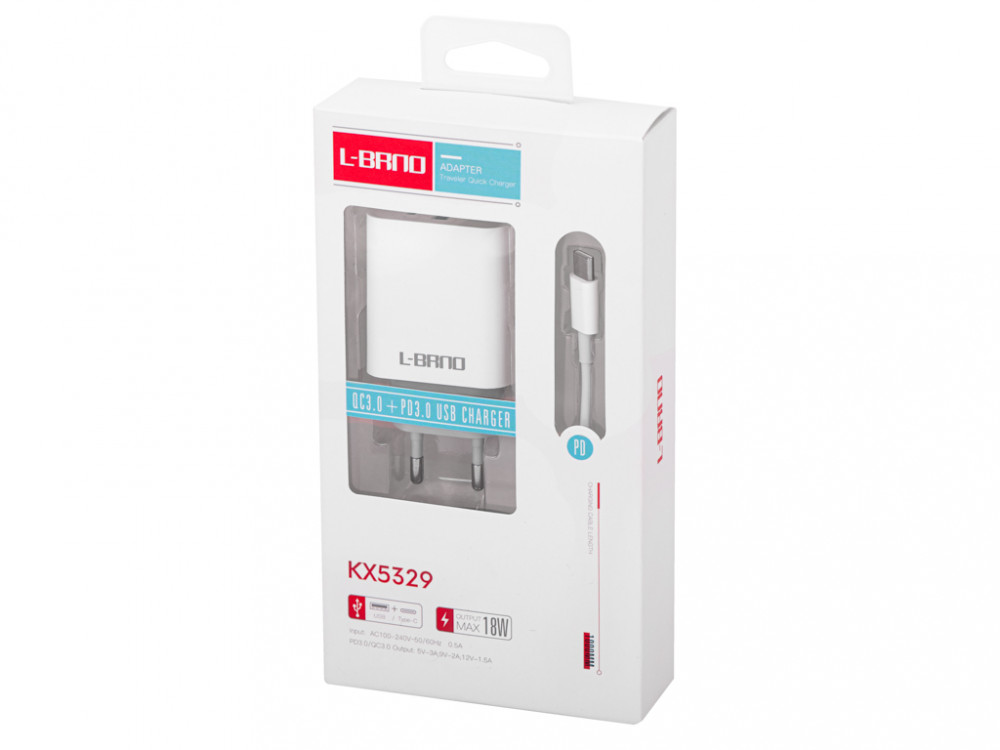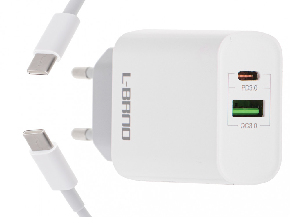 L-BRNO hálózati töltő gyors töltés 18W + C-típusú kábel