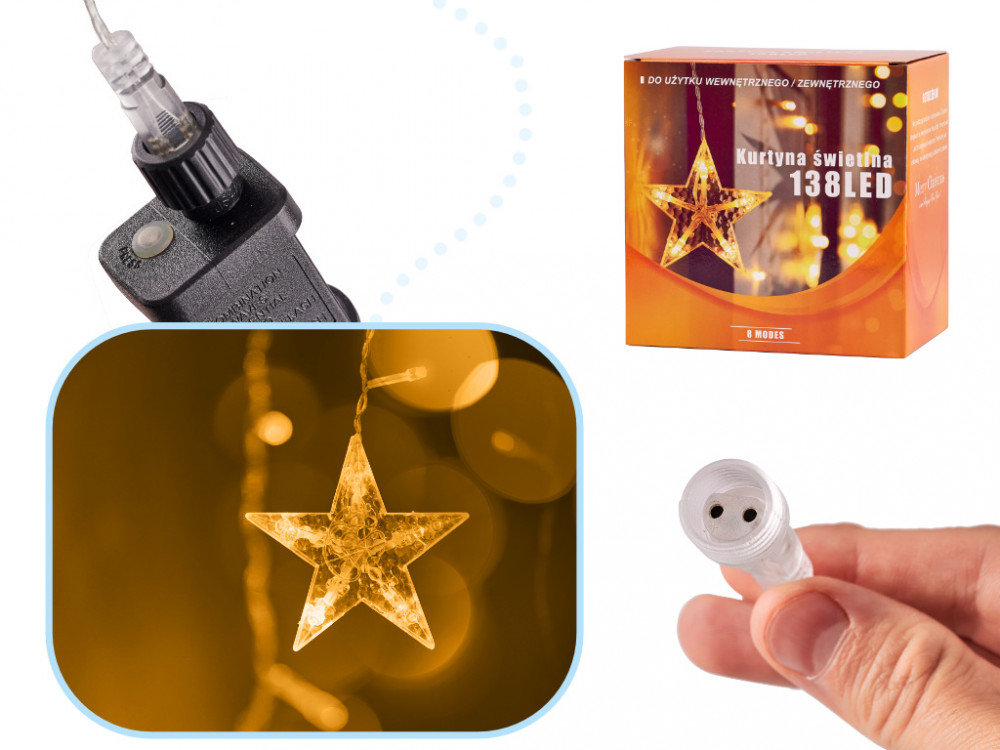 LED hold függöny fényei csillagok 2.5m 138LED meleg