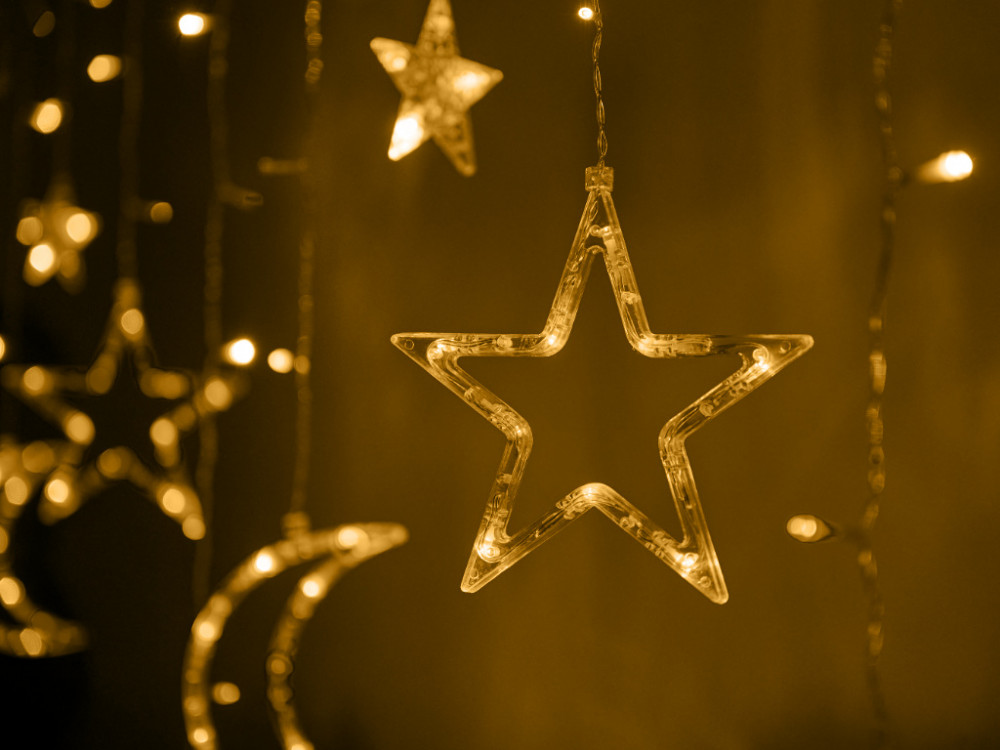 A fényfüggöny tökéletes egyedi karácsonyi dekorációnak, de a csillag- és holdmotívumokkal díszített fények az év más időszakaiban is használhatók, különösen eredeti esti világításként a gyerekszobában vagy hangulatvilágításként a nappaliban.