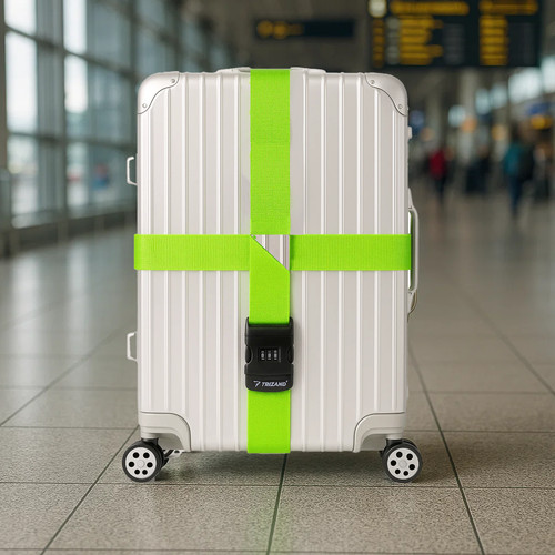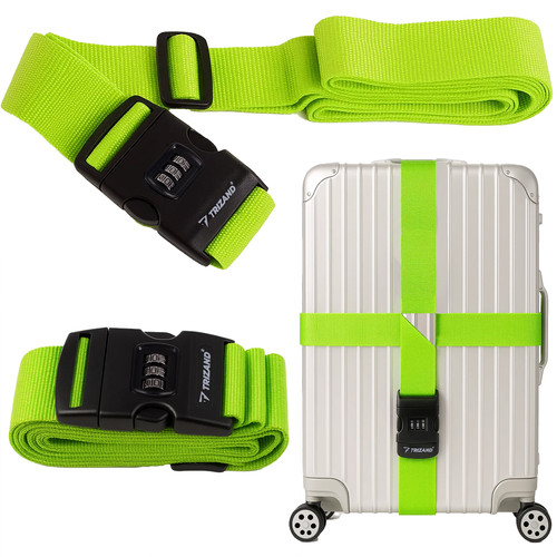 Trizand 25812 Kódzáras Csomagszíj Utazó Bőröndökhöz, 3,9 méter Hosszú, 5 cm Széles, Élénkzöld