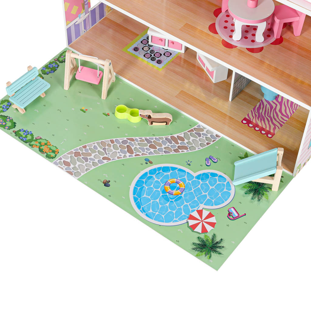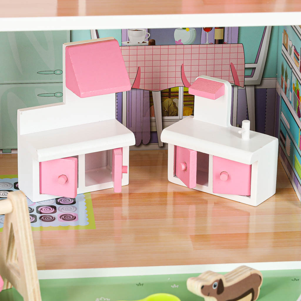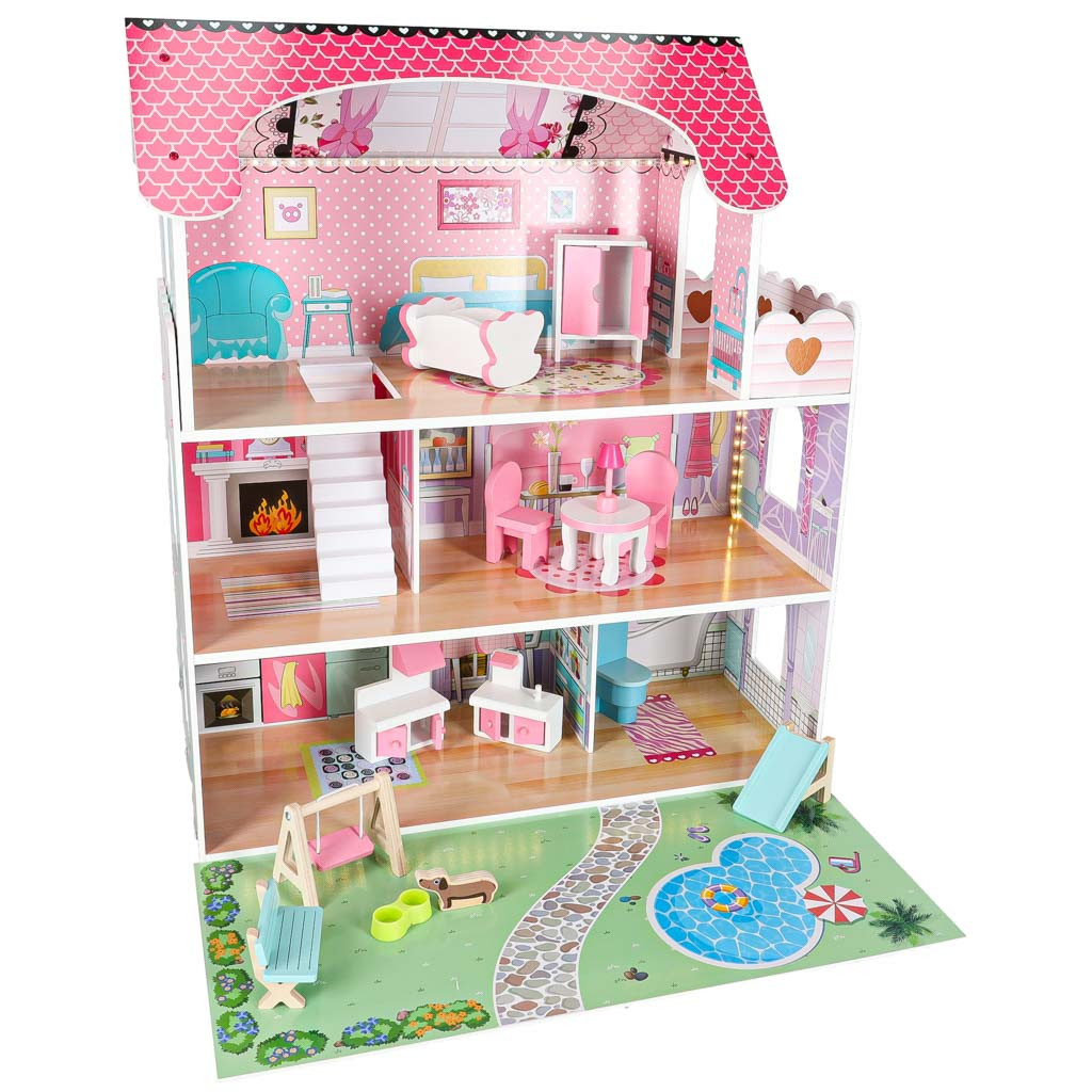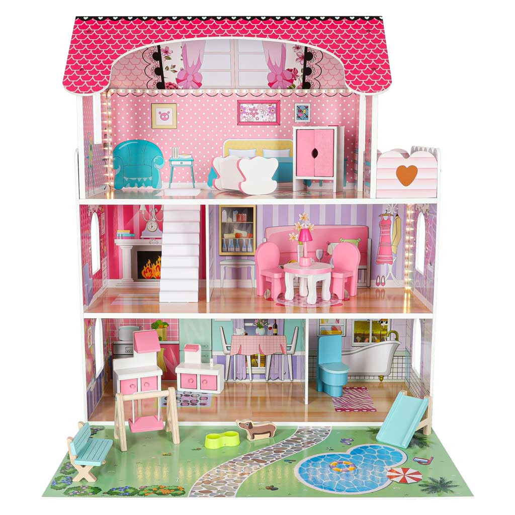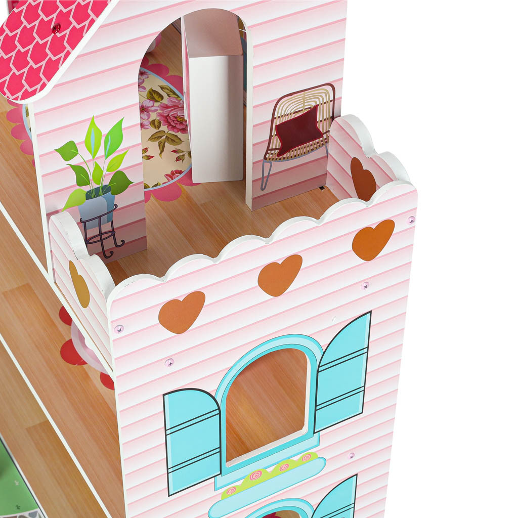 LED-es babaház terasszal és erkéllyel rózsaszínű