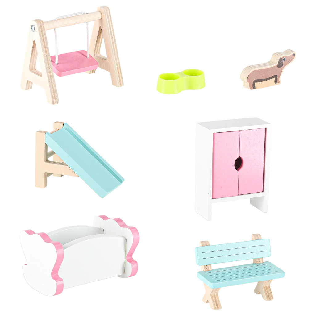 • Bútorzat - asztal, 2 szék, hinta, WC, nyugágy, pad, kiságy, lámpa, kutyatál, szekrény, tűzhely, mosdókagyló.