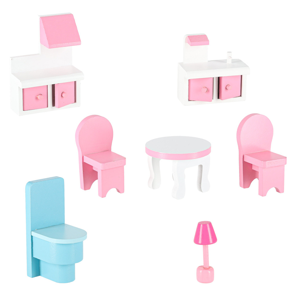 Lulilo Gardeno fa babaház, kerti bútorokkal, 70cm, rózsaszín LED-del