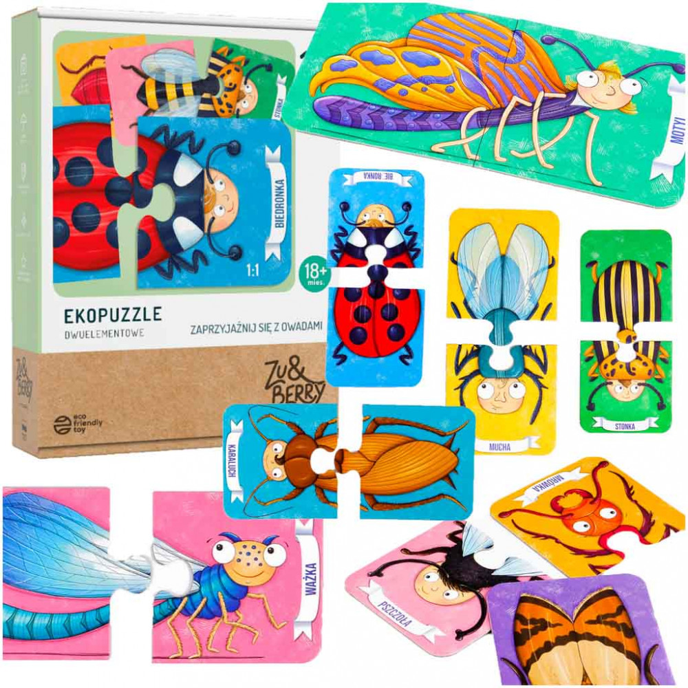 MUDUKO Puzzles kisgyermekeknek Barátkozzatok a rovarokkal Ecopuzzles két darab 18m+