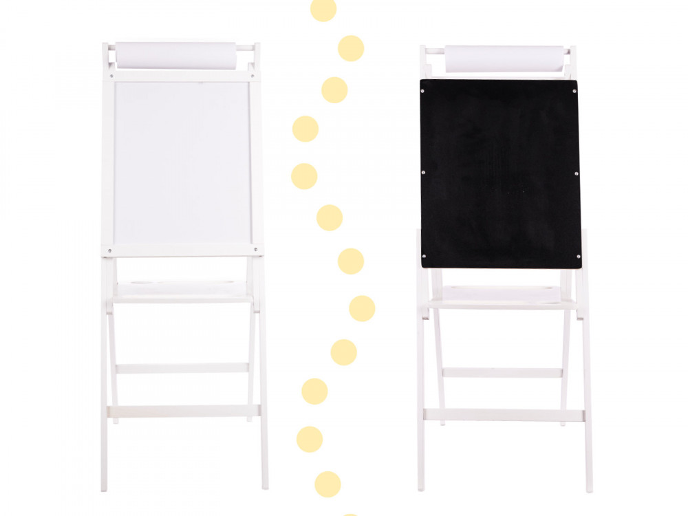 Mágneses kétoldalas fa krétatábla, fehér, 43cm x 32 cm x 115 cm