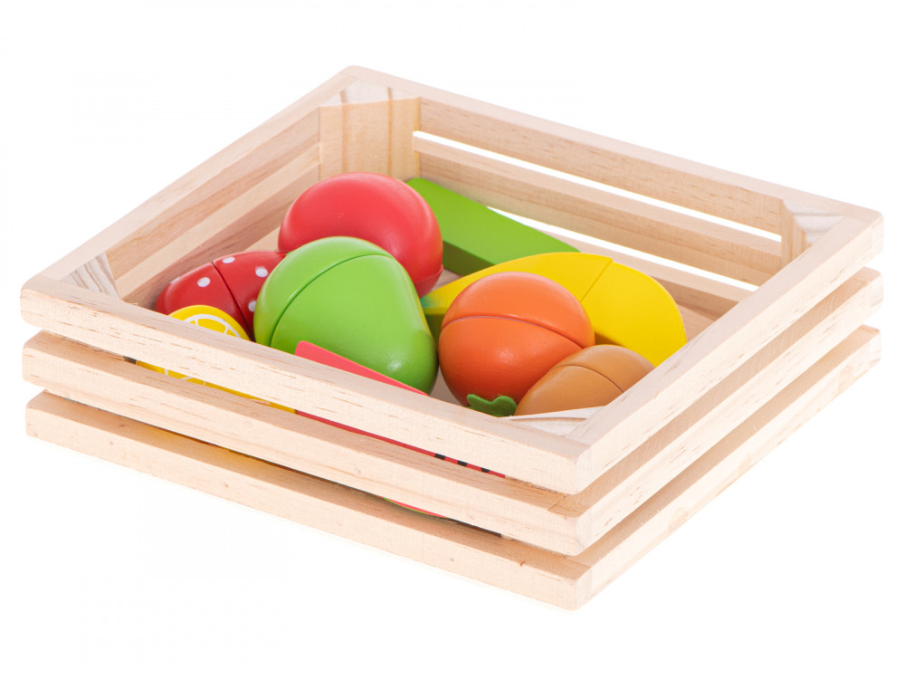 Mágnessel vágható fa gyümölcs dobozban + tartozékok