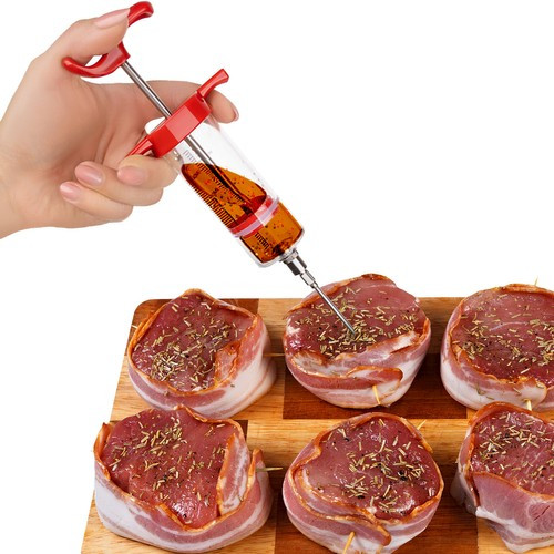 • HÁROM KÜLÖNBÖZŐ TŰ A KÉSZLETBEN – a készlet nem csak egy 50 ml-es sonkafecskendőt, hanem három tűt is tartalmaz. Mindegyik tű más és más, ami növeli a húsfecskendő használatának lehetőségeit . Találhat egy tűt egy lyukkal, két lyukkal és öt lyukkal.