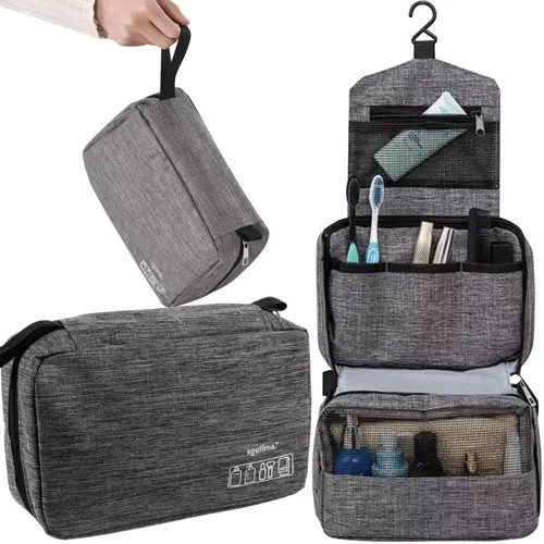 • HOROG + VÍZÁLLÓ – a benne elhelyezett fogas egy nyitott kozmetikai táska akasztására szolgál. Ez különösen utazáskor hasznos. Felakasztás után minden kozmetikum elérhető közelségben! Ezenkívül az anyag, amelyből a kozmetikai táska készült, vízálló. Ez különösen fontos azoknál a férfiaknál, akik a teljes piperetáskát magukkal viszik a zuhany alatt.