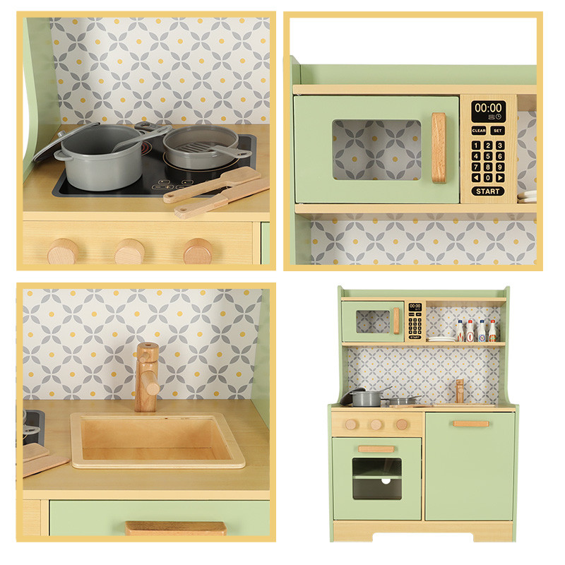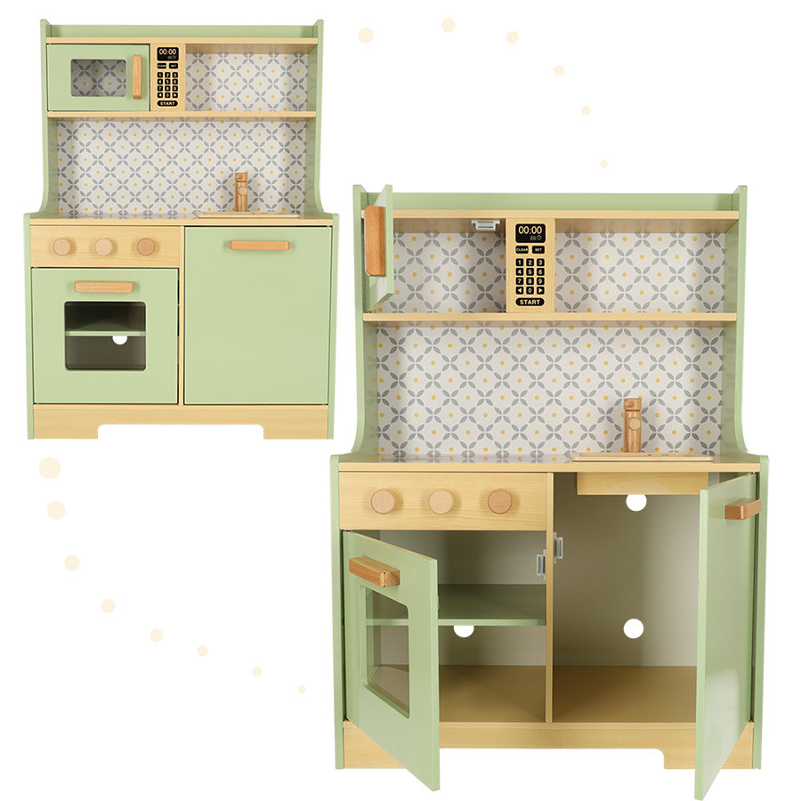 A fából készült gyermekkonyha menta színben a kicsik saját helye, ahol felfedezhetik a főzés művészetét és új készségeket tanulhatnak!