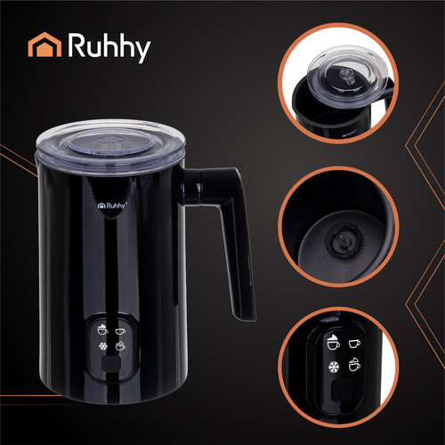 RUHHY 400W Fekete Elektromos Tejhabosító - 160 ml Habosítás, 350 ml Melegítés, Kávézói Minőség Otthon
