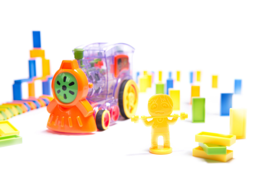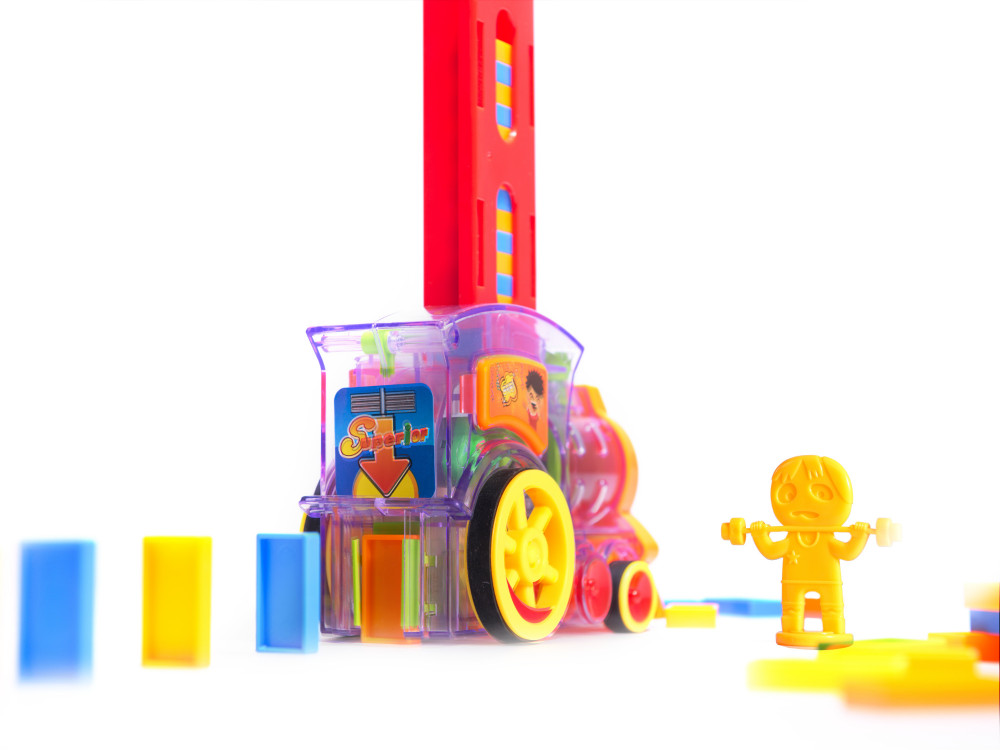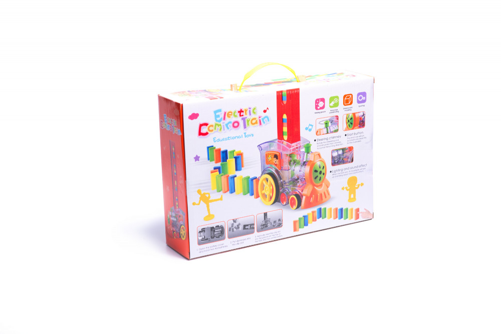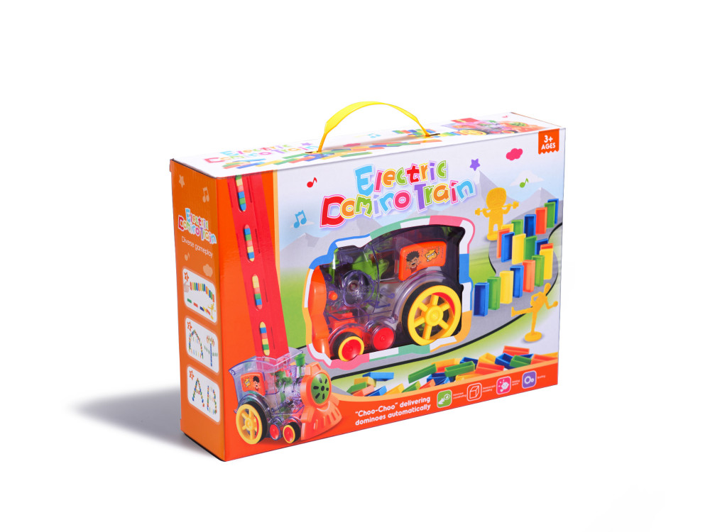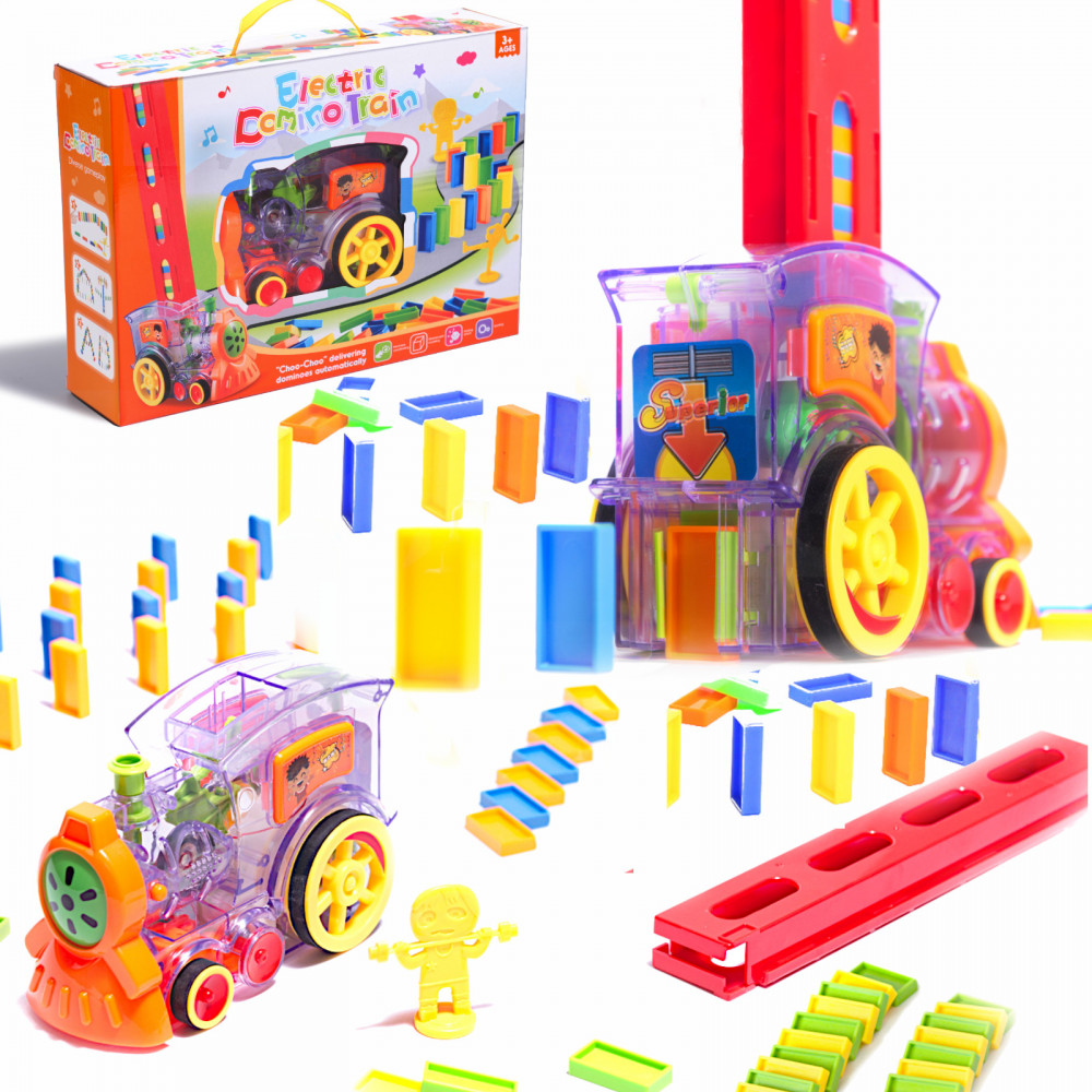 Interaktív, átlátszó mozdony, amely dominóblokkokat rendez sorba. Nagyszerű szórakozás az egész család számára. Fejleszti a képzelőerőt és a kézügyességet. Fény- és hangjelzéssel rendelkezik. Mozdonyt, 80 blokkot és blokkadagolót tartalmaz. Méretek: 16x10x7cm