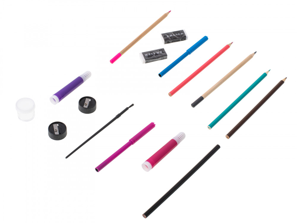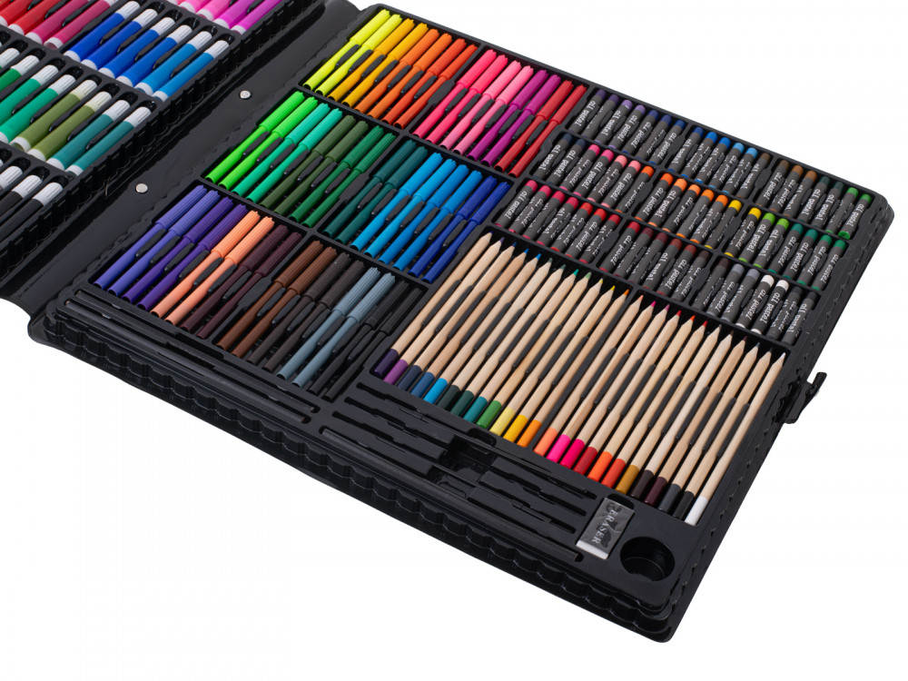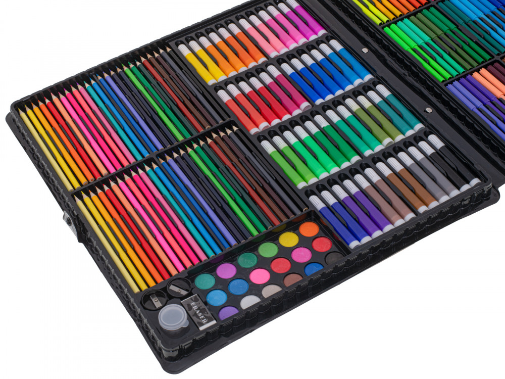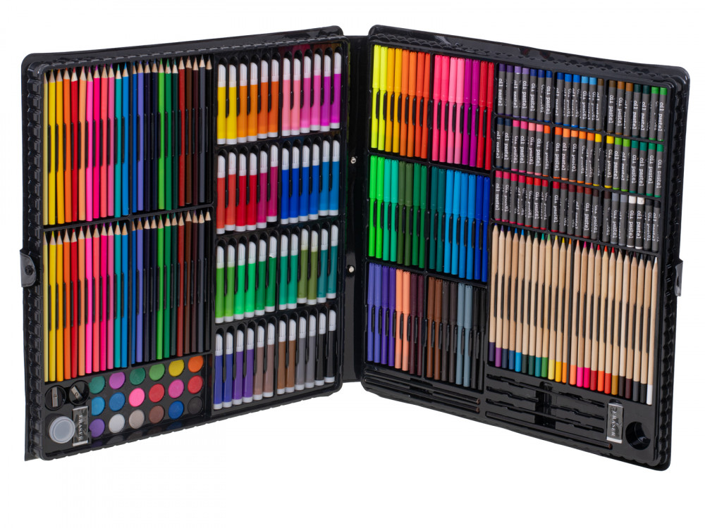 Nagyméretű, fantasztikus művészeti készlet egy praktikus hordtáskában. Sok használati tárgyat tart: különböző típusú filctollakat, zsírkrétákat és festékeket, valamint egyéb kiegészítőket. Ideális iskolai vagy otthoni munkához. A készlet 258 darabból áll. A tok méretei: 47x45.5x4cm.