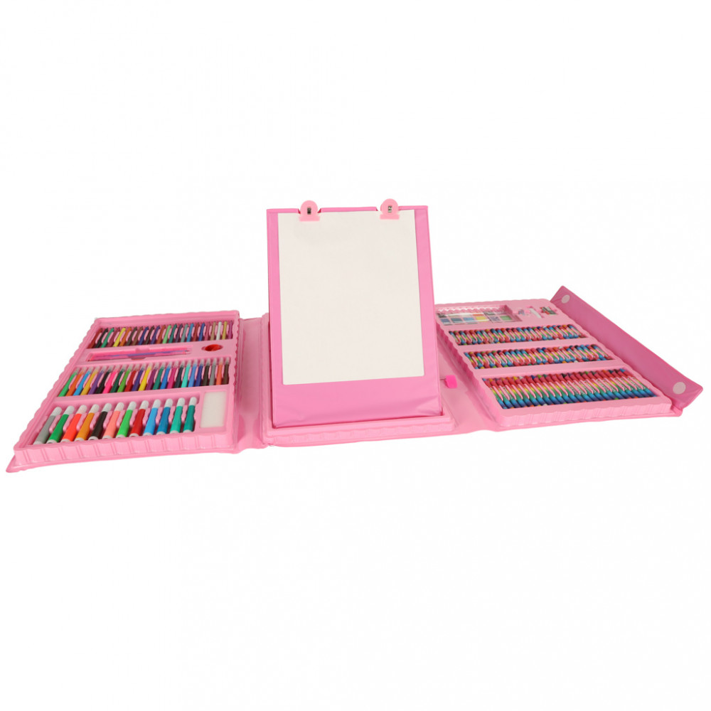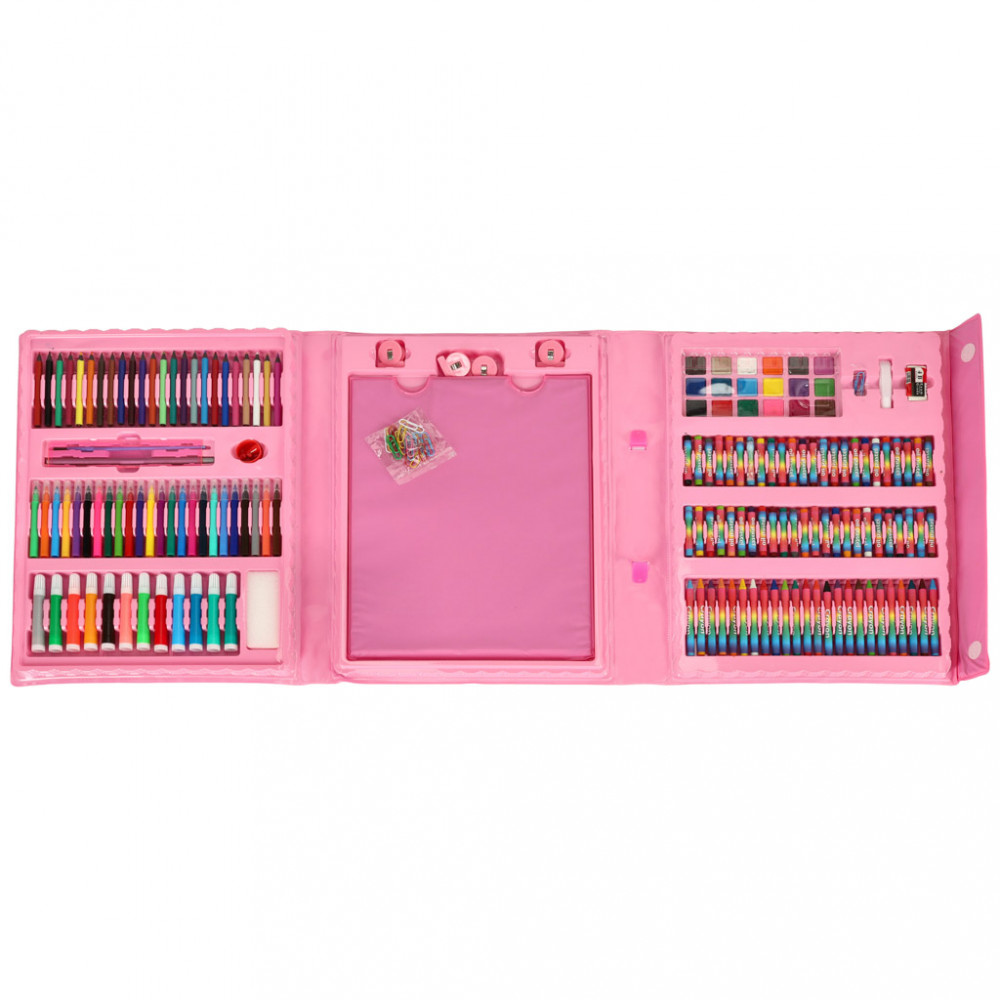 Fantasztikus művészeti készlet egy praktikus hordtáskában. Sok használati tárgyat tart: filctollakat, zsírkrétákat, festékeket és egyéb kiegészítőket. Ideális az iskolai munkához vagy otthon. A készlet 208 darabból áll. Az összehajtott tok méretei: 31x41x3.5cm.