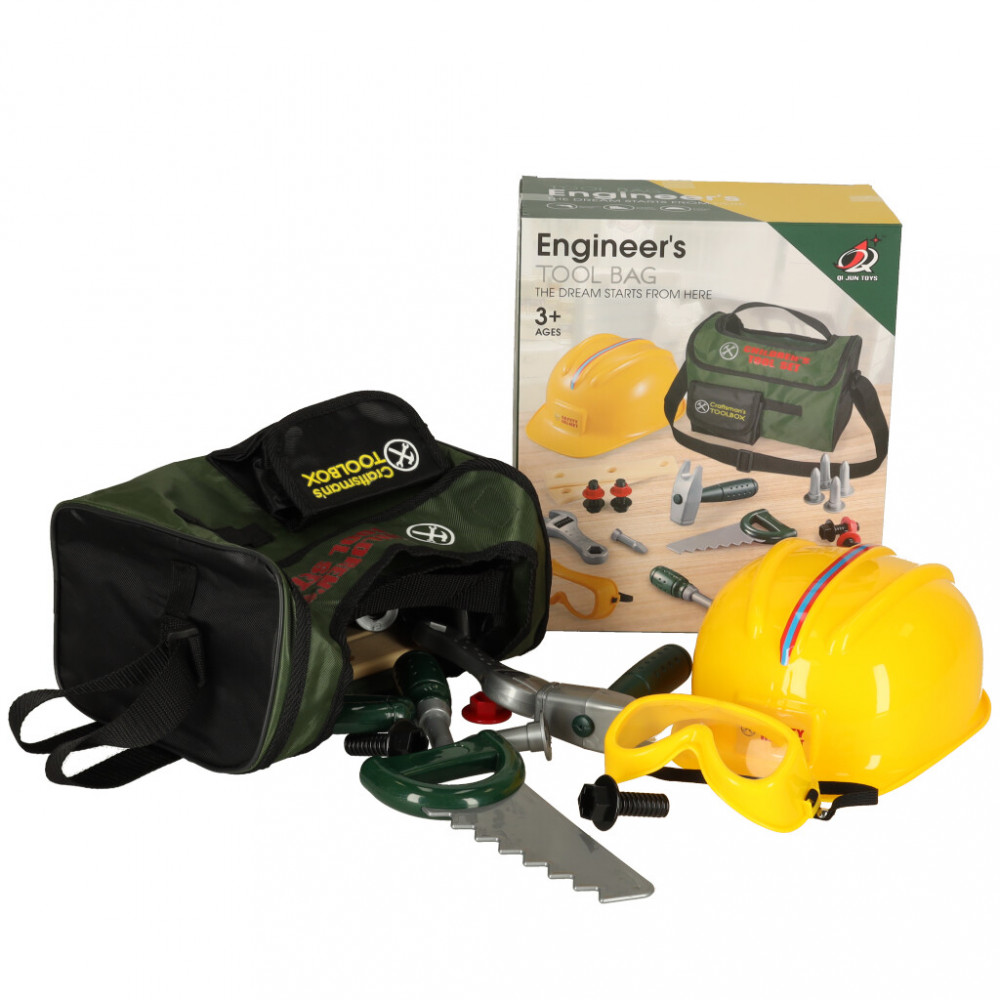 A kis ezermesterek számára olyan szerszámok állnak rendelkezésre, mint egy csavarhúzó két foglalattal, egy kalapács, egy fűrész, egy fogó és egy állítható csavarkulcs. De ennek a praktikus készletnek a megalkotásakor a fiatal barkácsolók biztonságáról sem feledkeztek meg - sisak és védőszemüveg is jár hozzá!