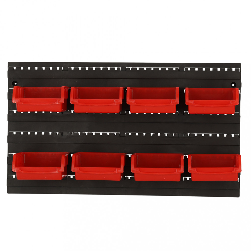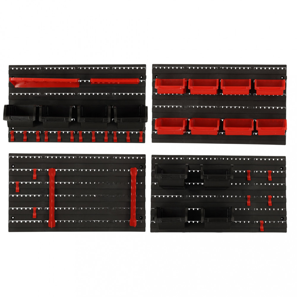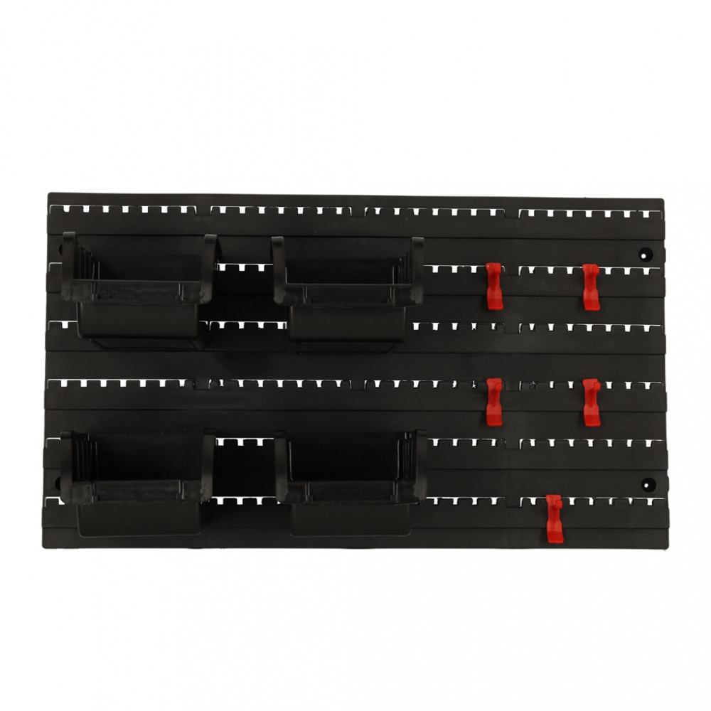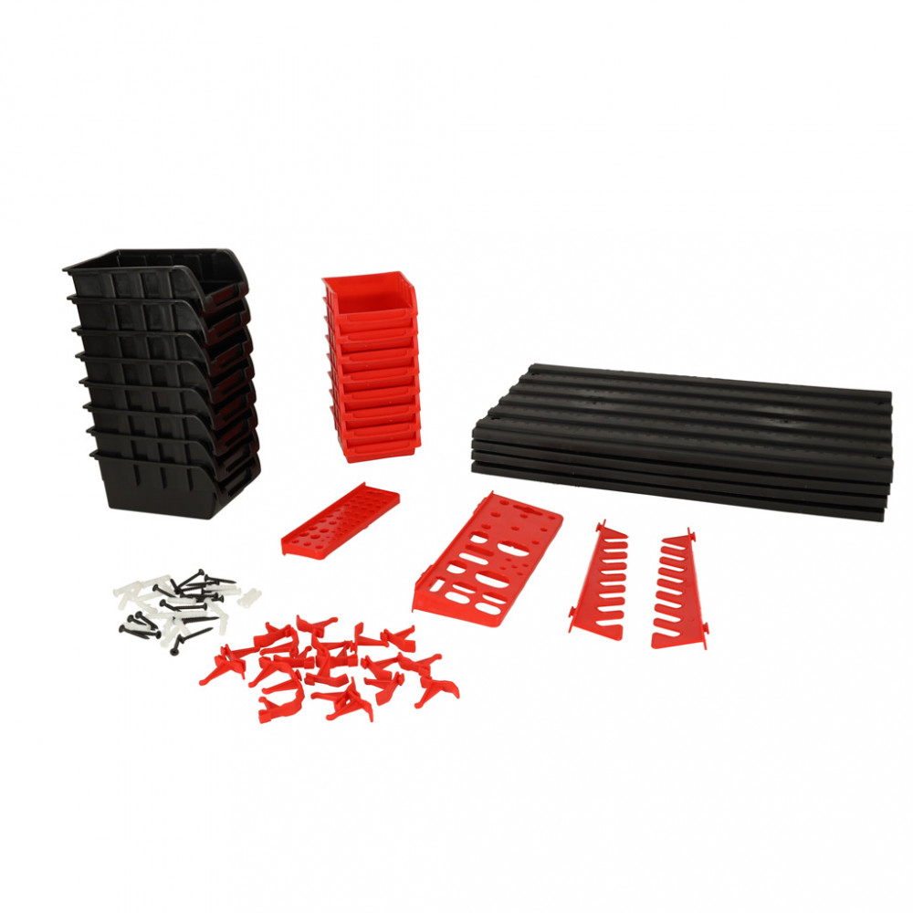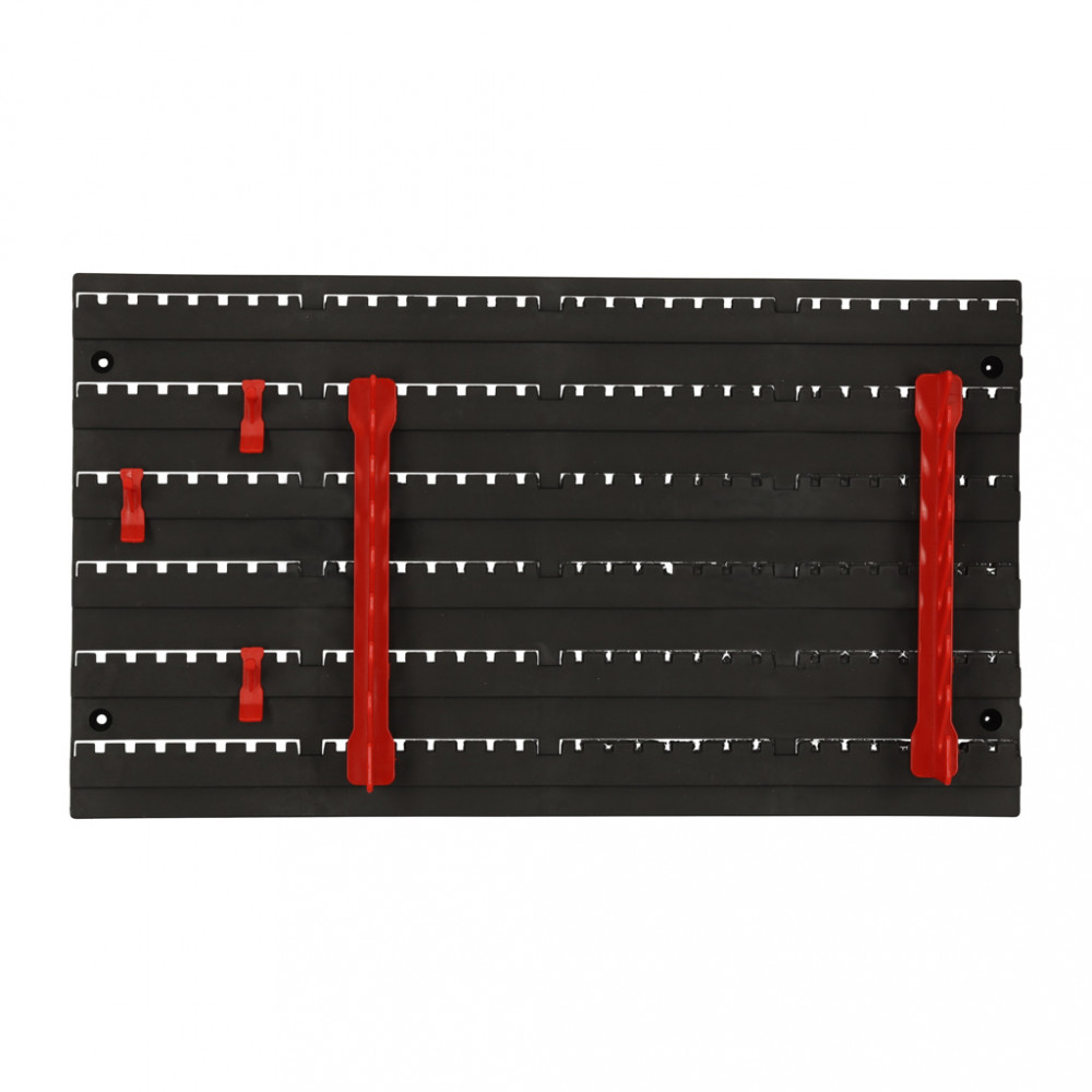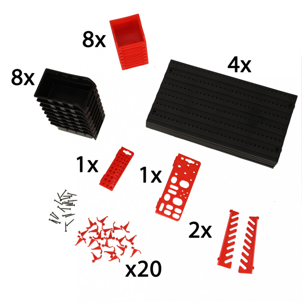 A szervezés szem előtt tartásával készült, két panelből és számos szerszámtároló elemből áll. Találhat tálcákat az apró tárgyaknak, polcokat a kulcsoknak, kampókat és kosarakat a nagyobb szerszámoknak. Az elemek elrendezését az Ön igényeihez igazíthatja, köszönhetően a különleges kialakításnak, amely lehetővé teszi, hogy a polcokat és a tálcákat bárhová felakaszthassa. Kedvenc szerszámai mindig kéznél lesznek.