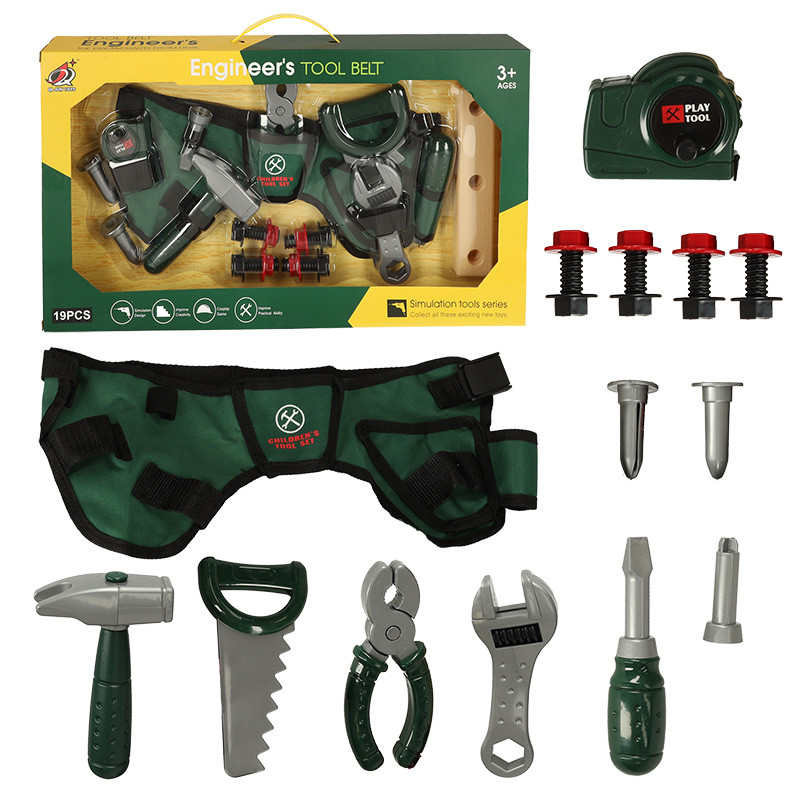 Olyan szerszámok állnak a kis ezermesterek rendelkezésére, mint a csavarhúzó, kalapács, fűrész, fogó és állítható kulcs. De a javításhoz vagy építkezéshez szükséges egyéb nélkülözhetetlen kellékek is - csavarok és anyák, szögek, sőt még egy mérőpálca is!