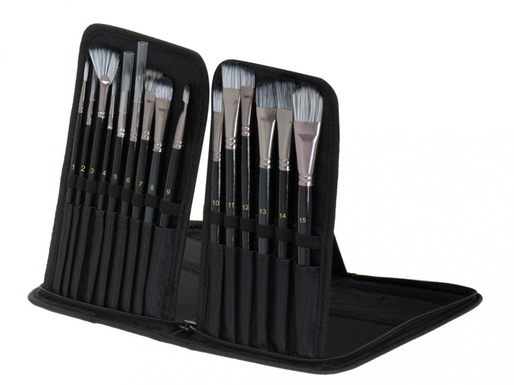 A készlet akár 15 különböző vastagságú ecsetet is tartalmaz, így a legötletesebb alkotások is könnyen elkészíthetők.