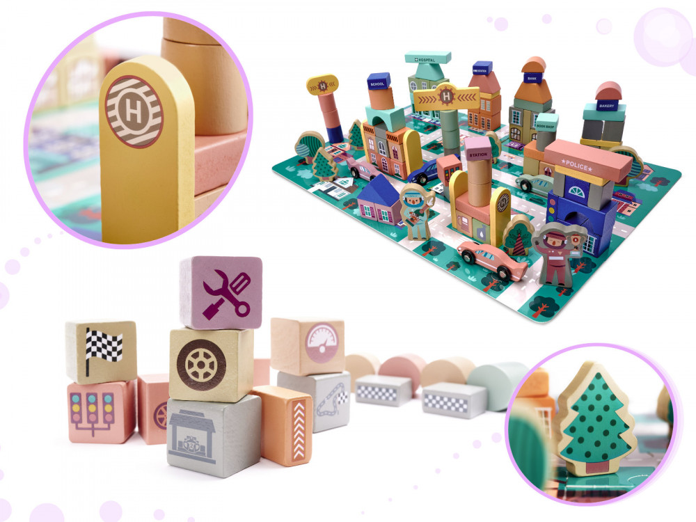 A téglák részletgazdagságukkal gyönyörködtetnek, a színes állatok, járművek és épületek minden gyermek figyelmét felkelti.