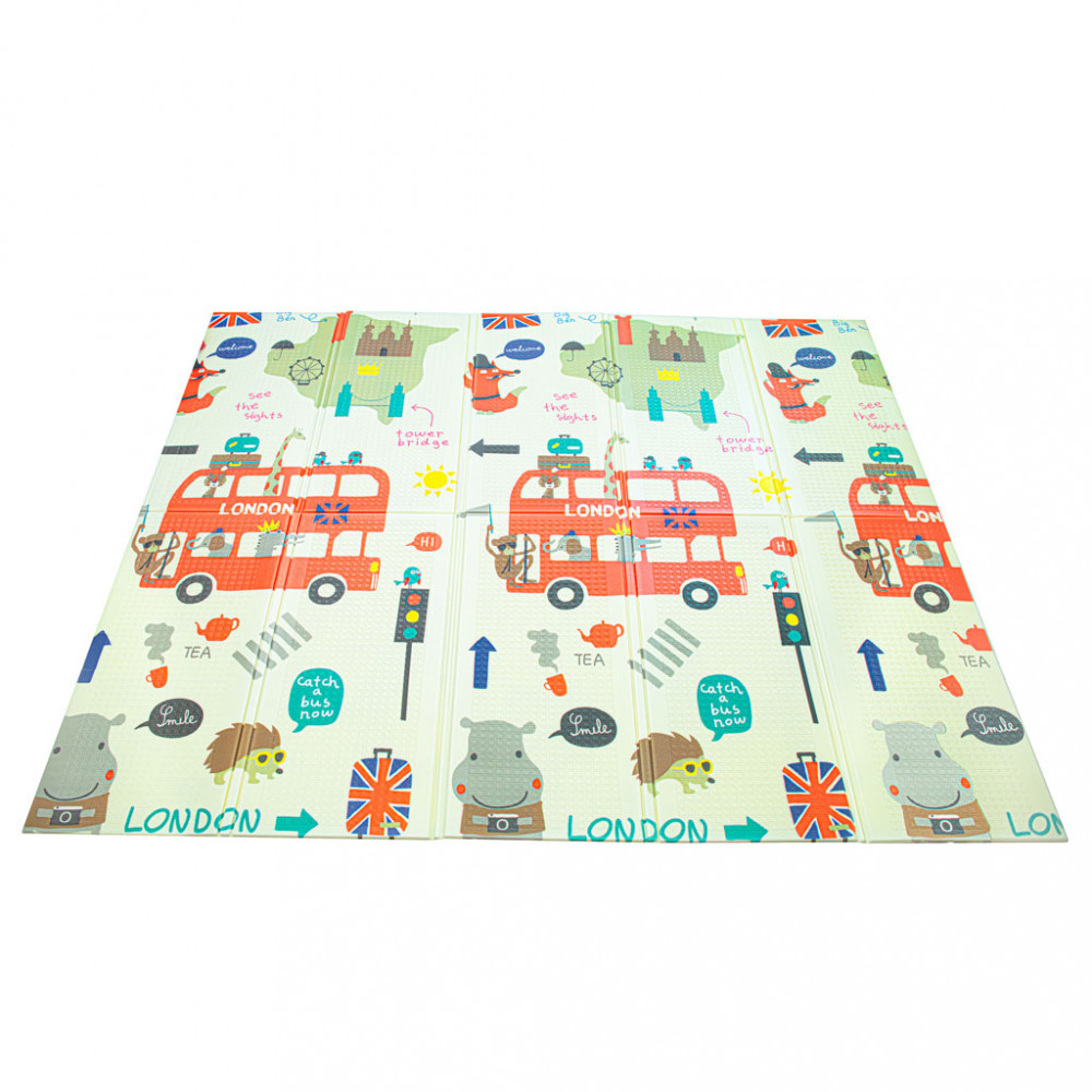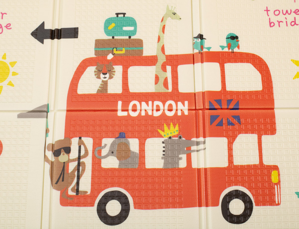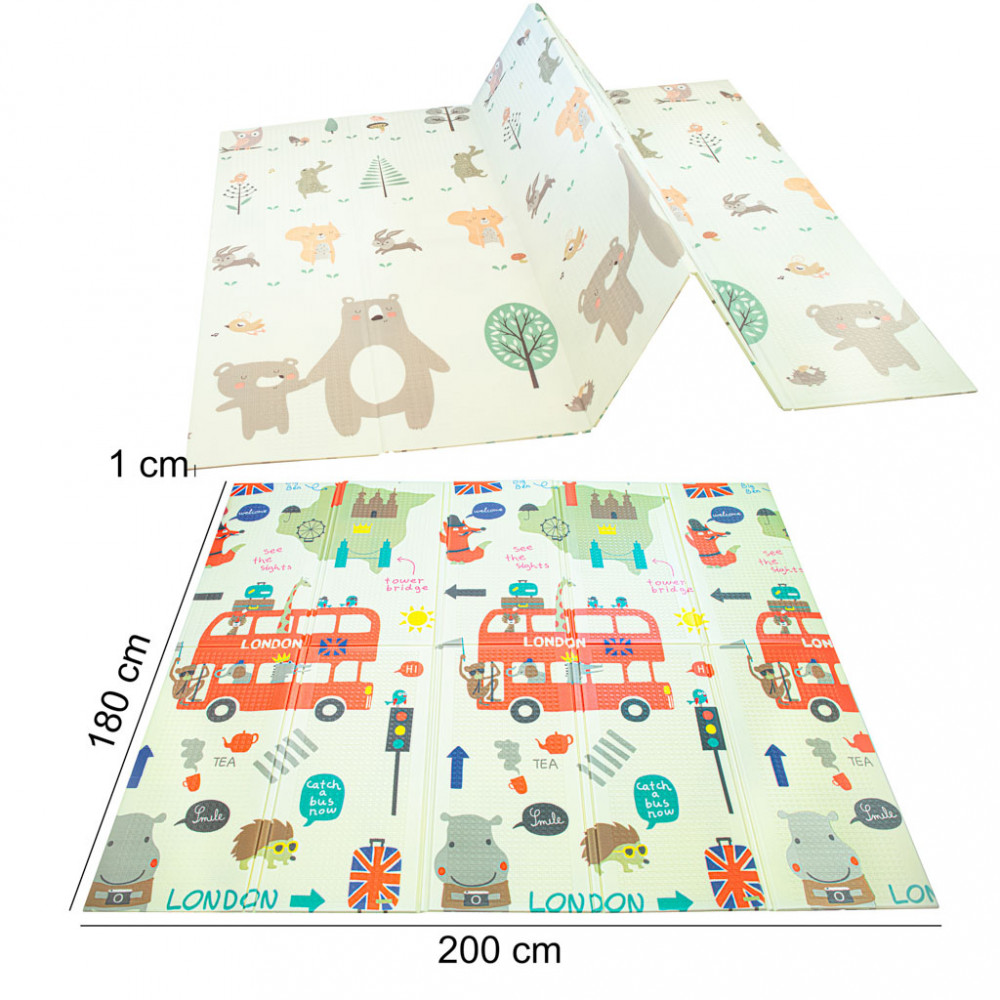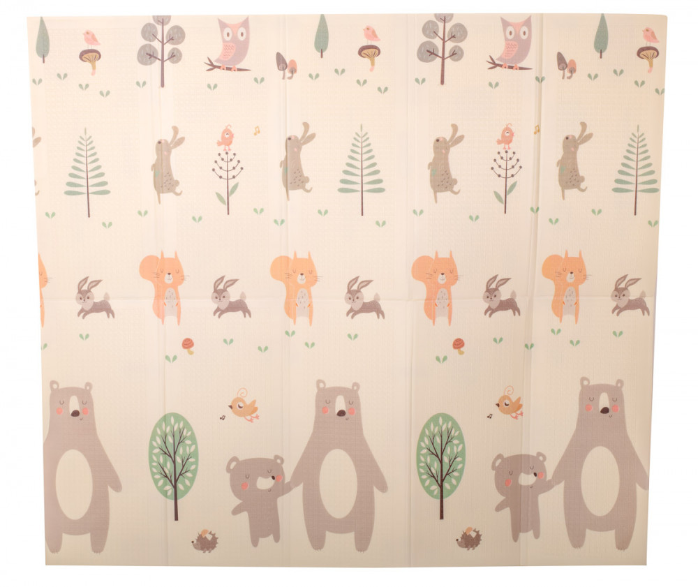 Puha, nagyméretű, összecsukható, csúszásmentes habszivacs szőnyeg. Játszószőnyegként is használható. Mindkét oldal más-más nyomtatás. Krémszínű, bagoly- és egyéb állatmintával. Vízálló habból készült. Méretek: 200 x 180cm