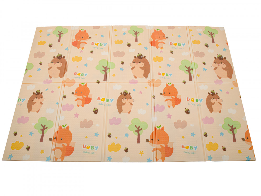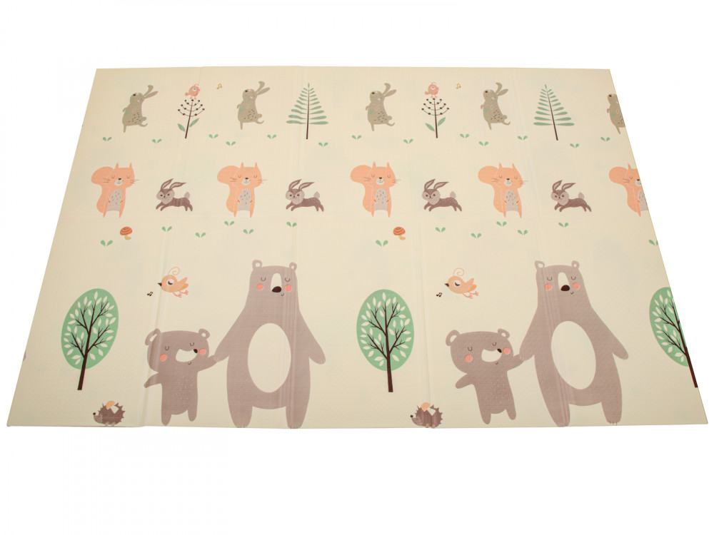 A kétoldalas, összecsukható habszivacs süni/maci szőnyeg biztonságos XPE anyagból készült. Az XPE hab kiválóan csillapítja a baba mozgását. Ideális a kúszás, járás tanulásához. Puha alátétet biztosít a játékhoz.