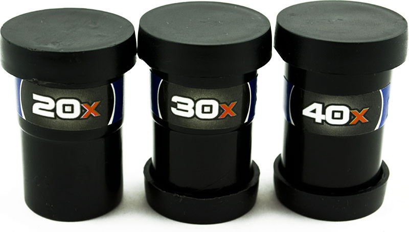 Távcső cserélhető lencsékkel különböző erősségű (20x, 30x, 40x).