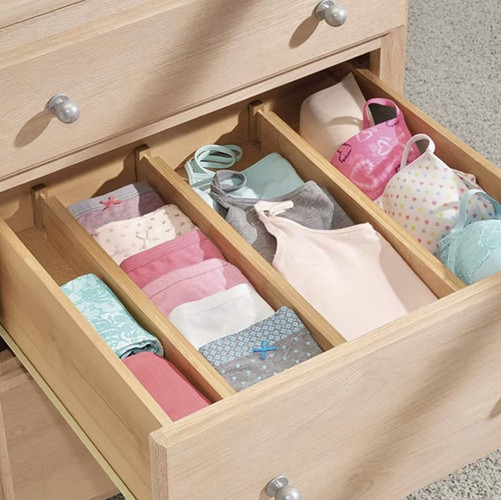 RUHHY Állítható Bambusz Fiókrendező, 4 db, Teleszkópos Fiók Elválasztó, Természetes Szín, 42-56 cm