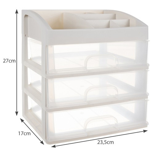 • 3 ÁTLÁTSZÓ FIÓK – a rendszerező átlátszó anyagból készült, aminek köszönhetően jól látható, mi van benne, így gyorsan megtalálhatja a tárgyat, hogy elérje. 3 azonos méretű átlátszó fiókkal rendelkezik .