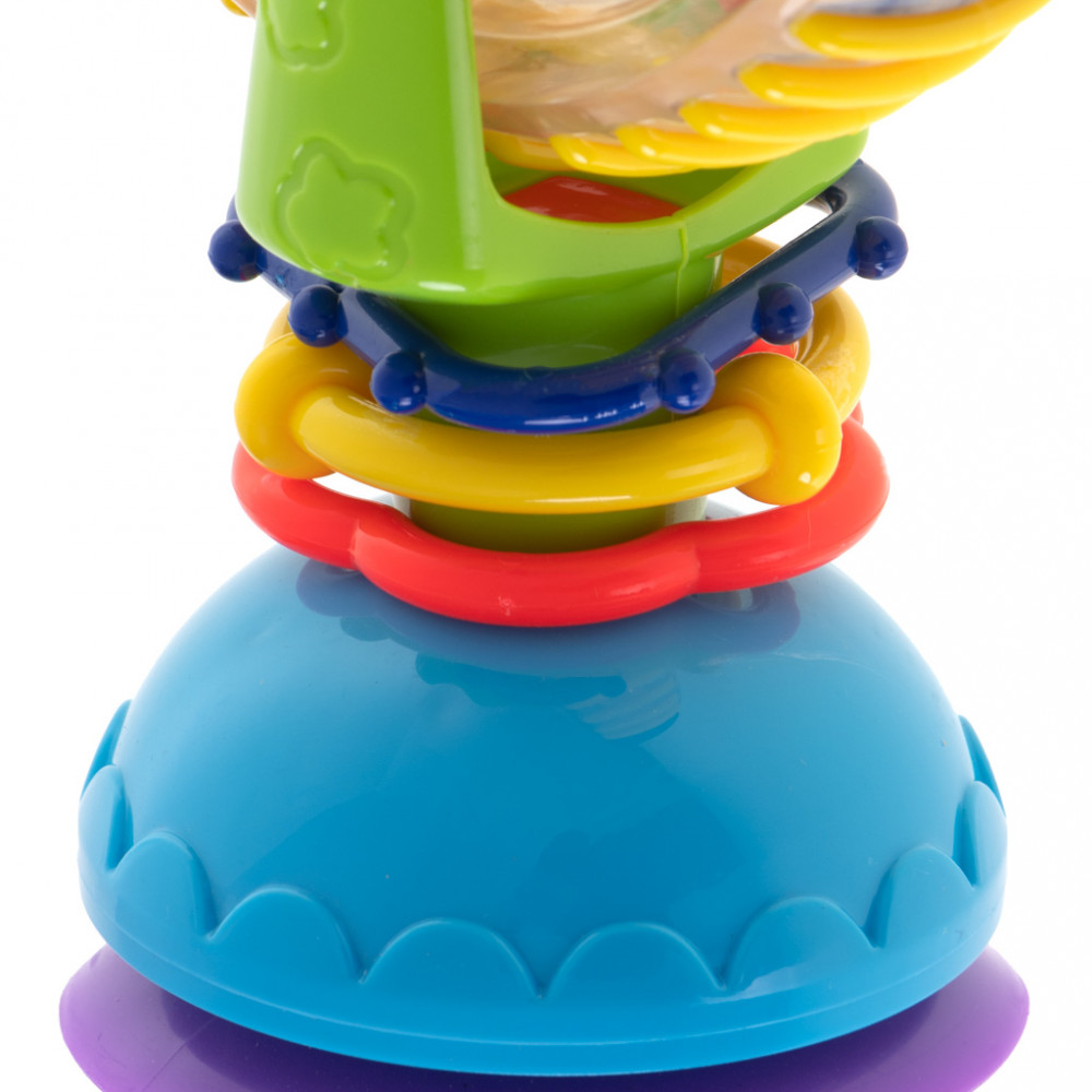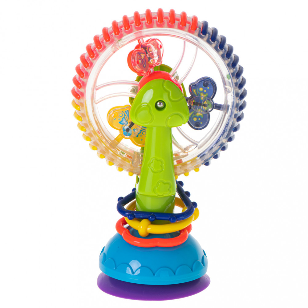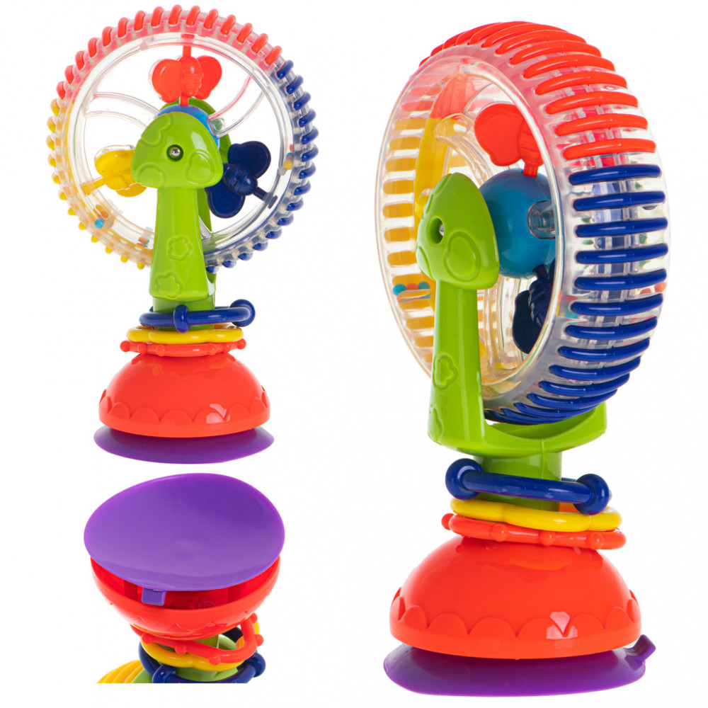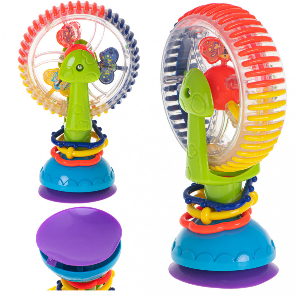 Színes, óriáskerék alakú játék gyerekeknek. A játék csörgő funkcióval rendelkezik. Ideális a vízben való játékhoz. Tapadókorongokkal ellátott, így játék közben nem mozdul el. Méretek: 17cm x 11,cm