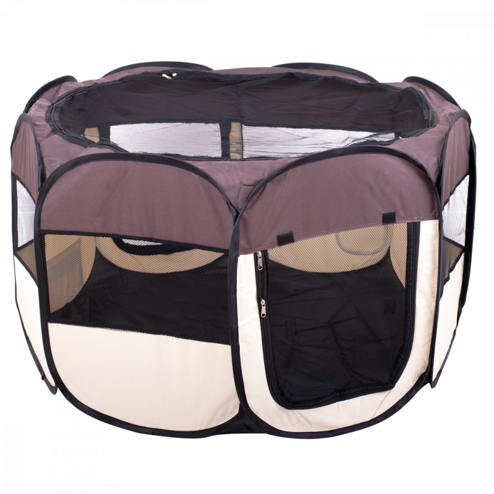 Összecsukható trikolor kutyatoll hatszögletű formával. Cipzáras bejárattal és praktikus zsebekkel rendelkezik. Ideális utazáshoz. Összehajtogatva nagyon kevés helyet foglal el. Méretek: átmérő: 104cm, 35cm(W)x65cm(H).