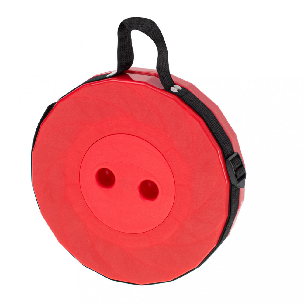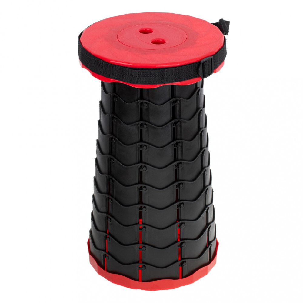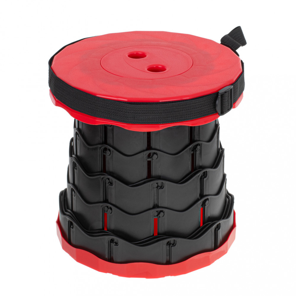 Összecsukható szék - ideális az erődben, horgászáshoz vagy kempingezéshez. Stabil és robusztus felépítés. Állítható heveder és fogantyú a könnyű szállításhoz. Állítható ülésmagasság. Anyaga: műanyag. Max. magasság: 45 cm. Átmérő: 25 cm.