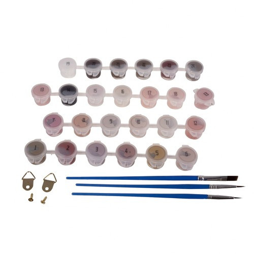 • KÉSZ KÉSZ - a paint by numbers készlet mindent tartalmaz, ami a munka megkezdéséhez szükséges. A készlet festékeket, ecsetet és egy festhető képet tartalmaz , amely megkönnyíti a tevékenység megkezdését.